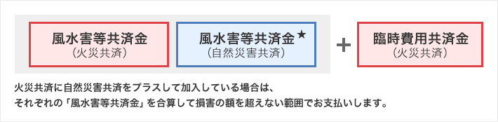 それぞれの「風水害等共済金」を合算して損害の額を超えない範囲でお支払いします。