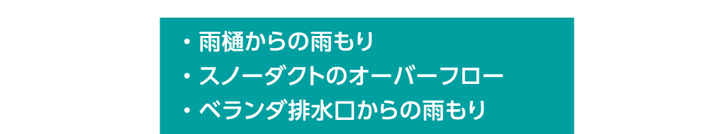 給排水設備の詰まりなどによる建物内部の水ぬれについて、つぎの「水もれ事故(注)」もお支払いの対象となります。
