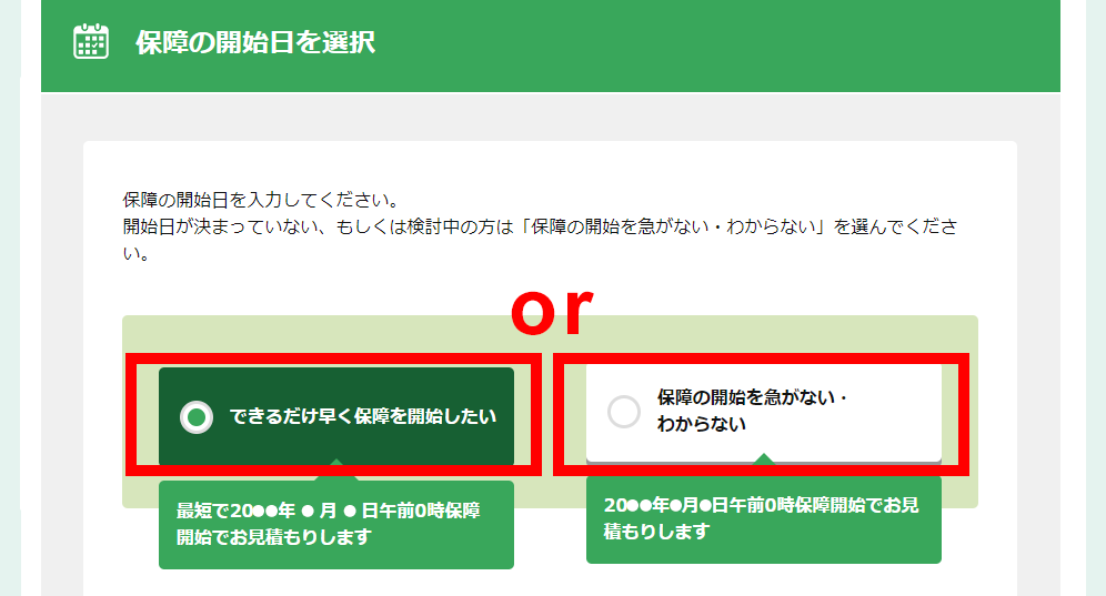 保障の開始⽇を選択