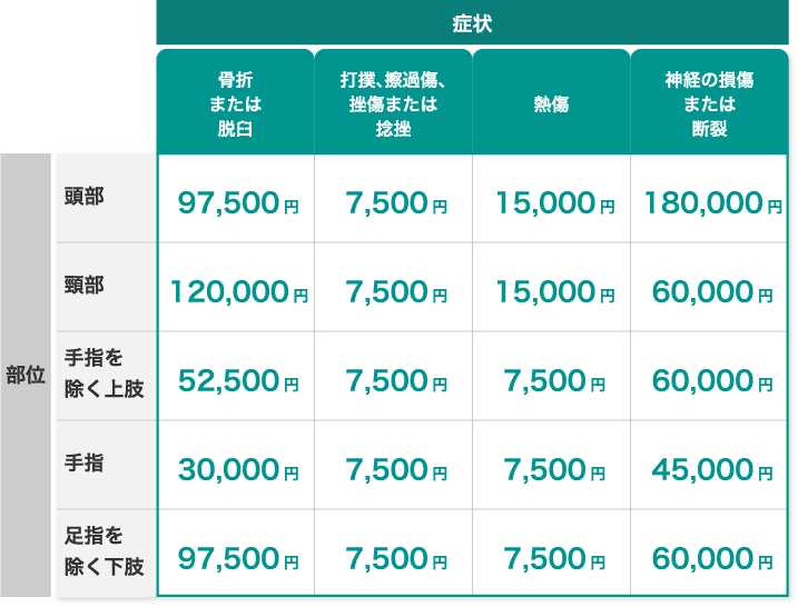 傷害タイプ 部位・症状別傷害共済金 支払額(抜粋)