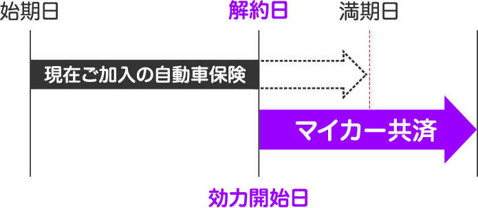 現在加入している自動車保険(共済)を契約期間の途中でマイカー共済に切り替える場合の注意点はありますか?