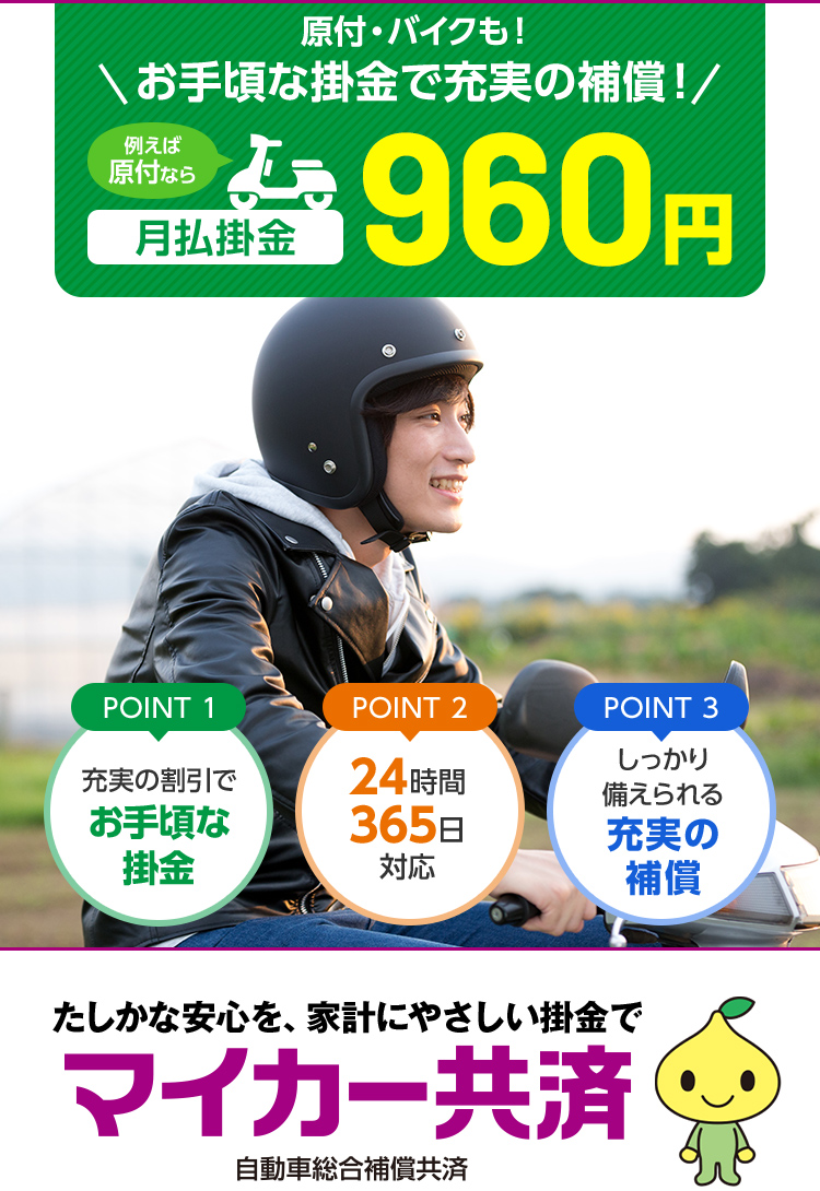 年齢や等級に関係なく掛金がお手頃!だから初めてでも安心
