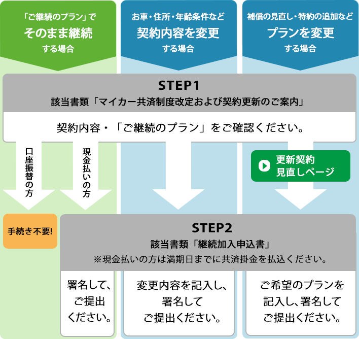 マイカー共済を継続せず満期日をもって解約する手続きを教えてください。