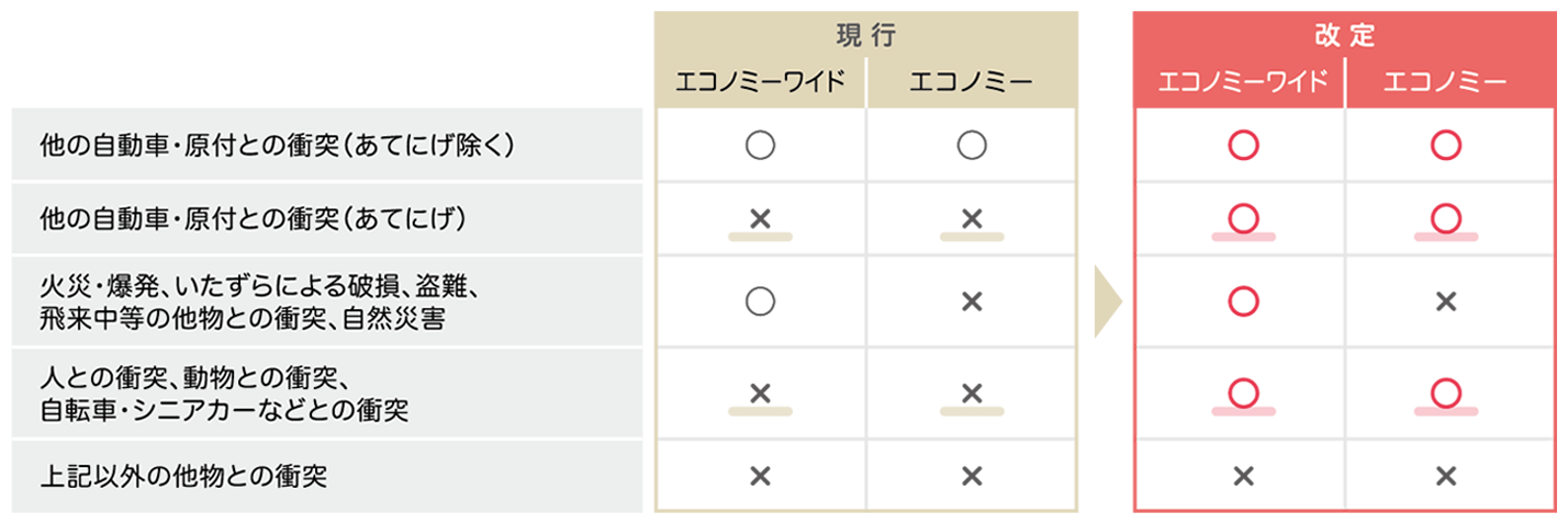 1. 車両損害補償(エコノミーワイド・エコノミー)の補償範囲の拡大 改善