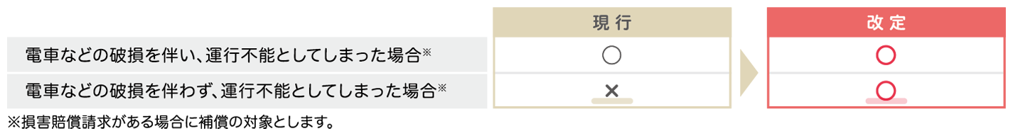 1.電車等の破損を伴わず運行不能にした場合の補償範囲の拡大改善