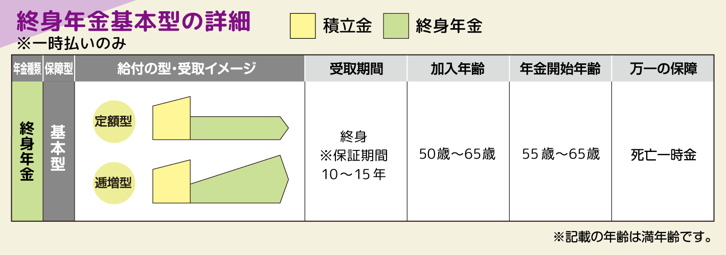 年金を開始したら、生涯にわたって受け取れる年金です。