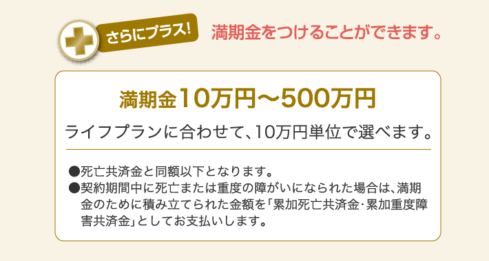 一定期間、死亡・重度の障がいに備えながら、貯蓄も兼ねられる満期金付きのプランです。
