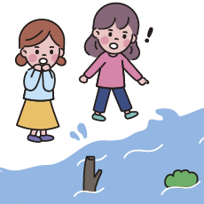 川が増水している場合には川の流れが速く、橋が流されたりして非常に危険ですので、川の近くには近寄らないようにしましょう。