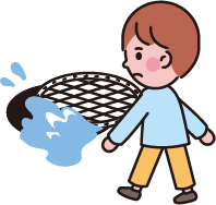 浸水している場所を歩くときには、マンホールや側溝などに注意する必要があります。過去に、急激な雨水の流入によってマンホールのふたがはずれ、そこに転落してしまった方や、豪雨による災害時に、側溝で倒れてしまった方もいます。また、浸水している場所は足下がよく見えず大変危険です。こうした場所を移動せざるを得ない場合は、棒などを持って足下を確かめながら移動するようにしましょう。