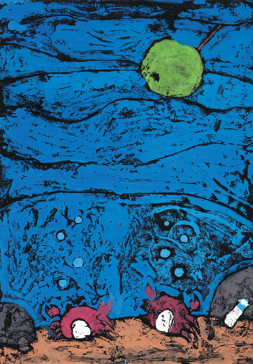やまなしを見つけたカニ