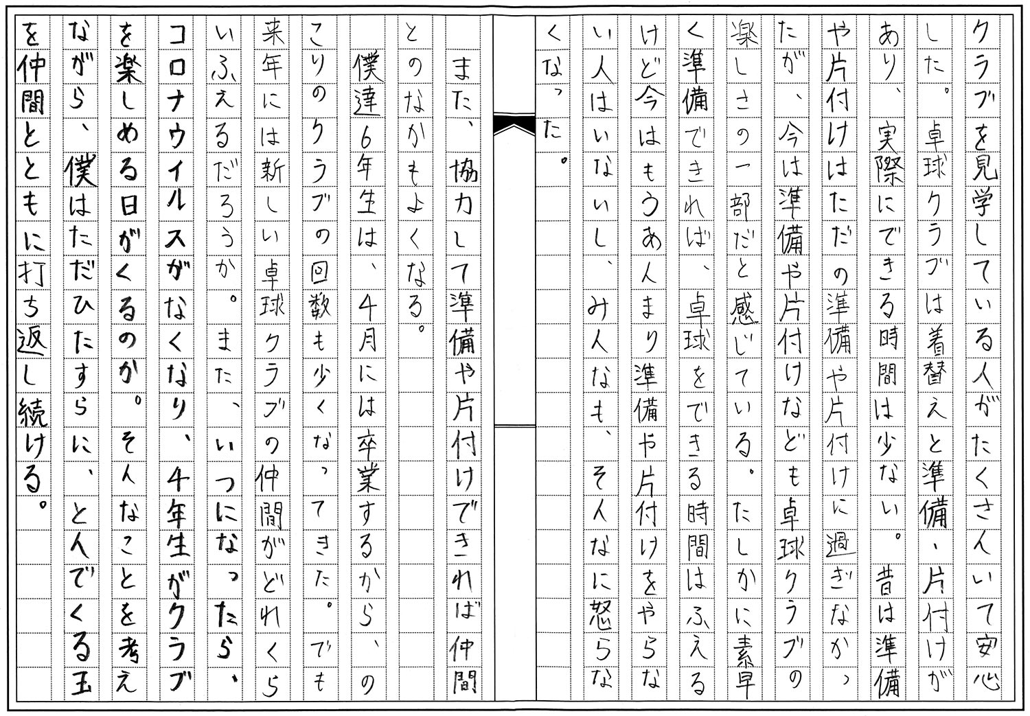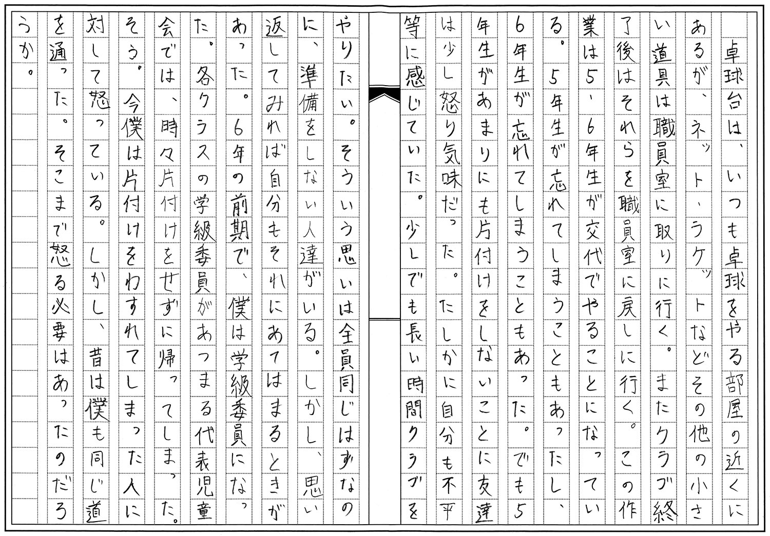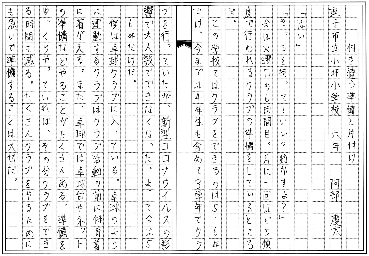 6年生 阿部 慶太 付き纏う準備と片付け