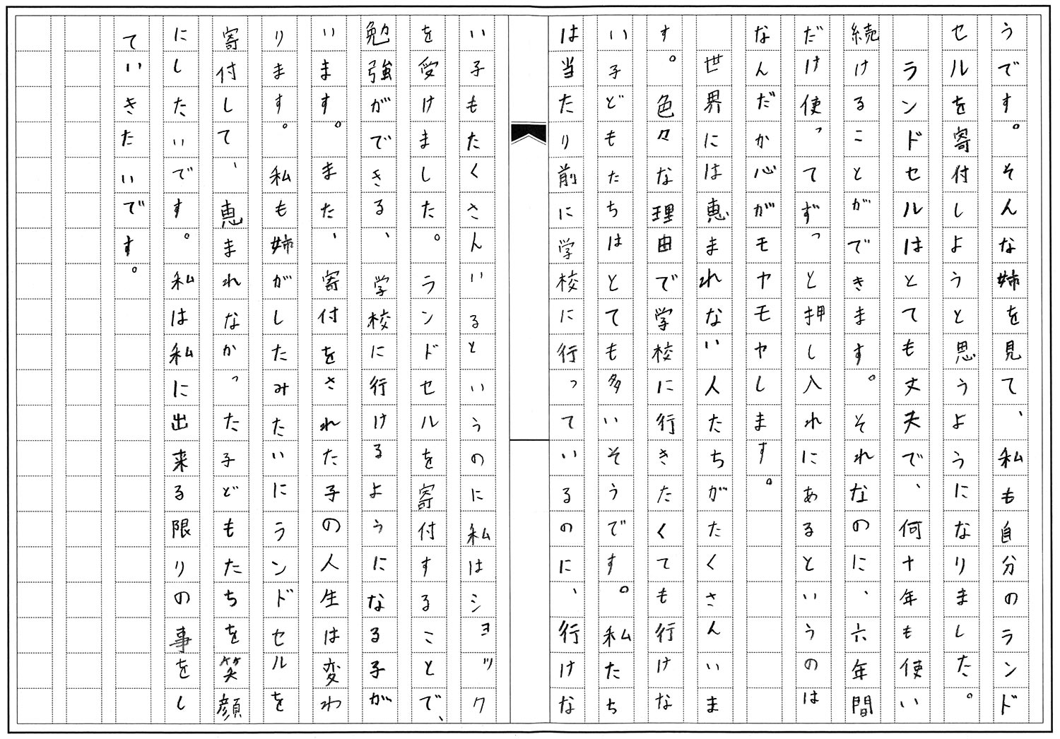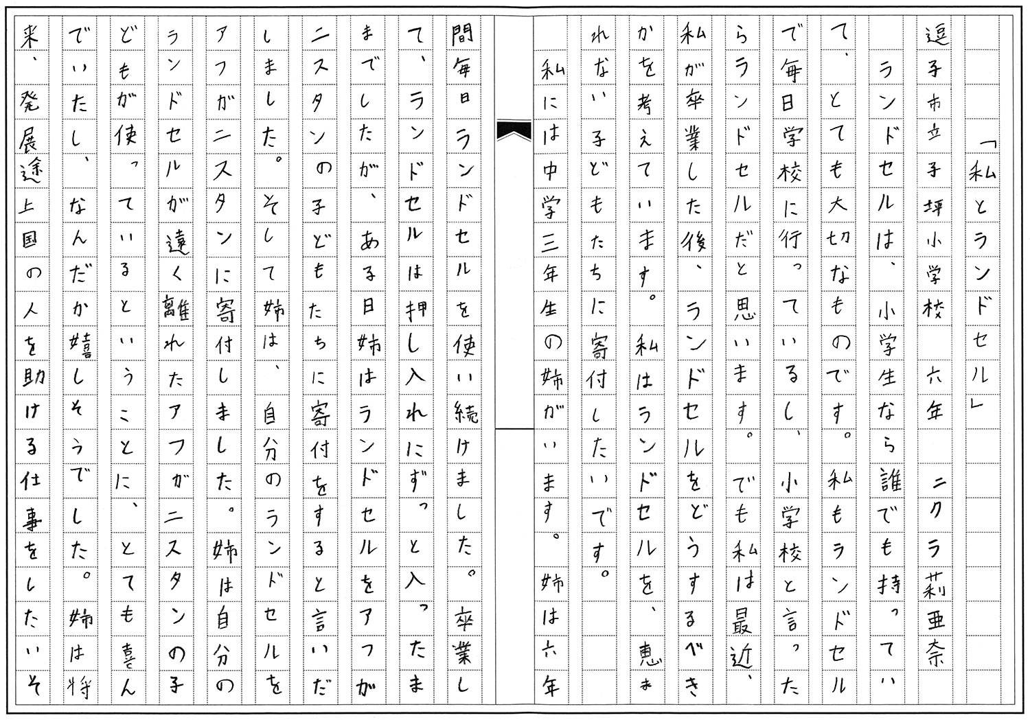 6年生 ニクラ 莉亜奈 「私とランドセル」