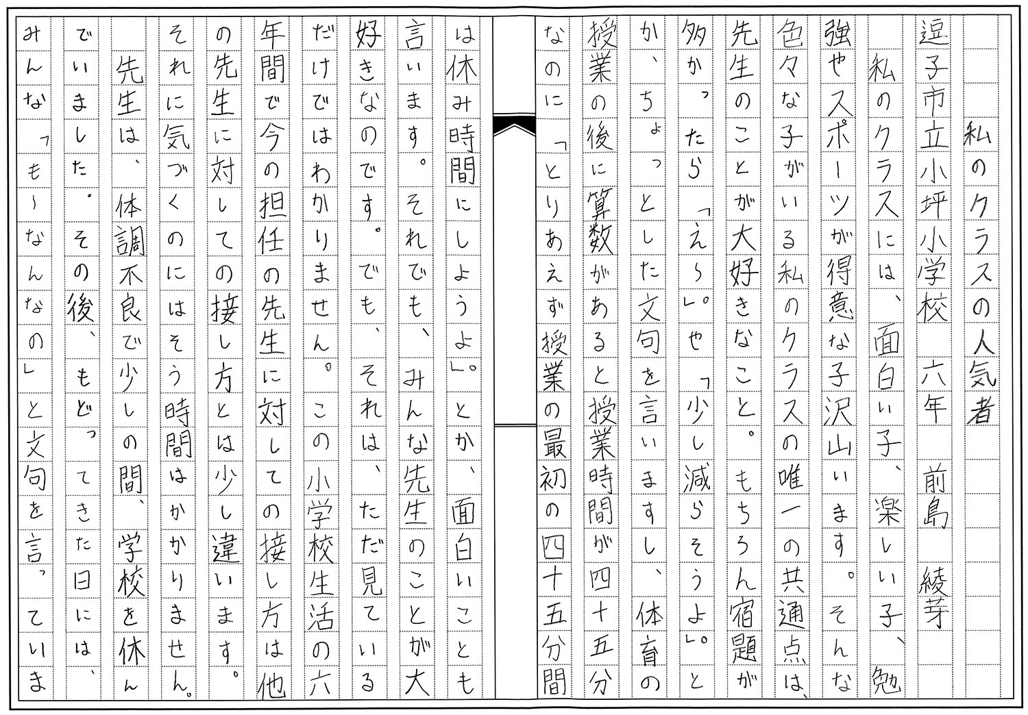 6年生 前島 綾芽 私のクラスの人気者