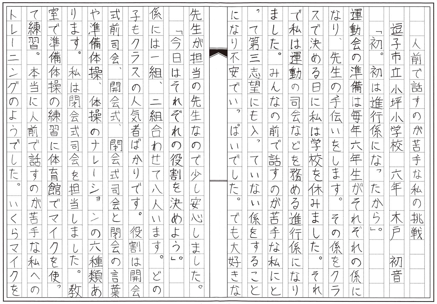 6年生 木戸 初音 人前で話すのが苦手な私の挑戦