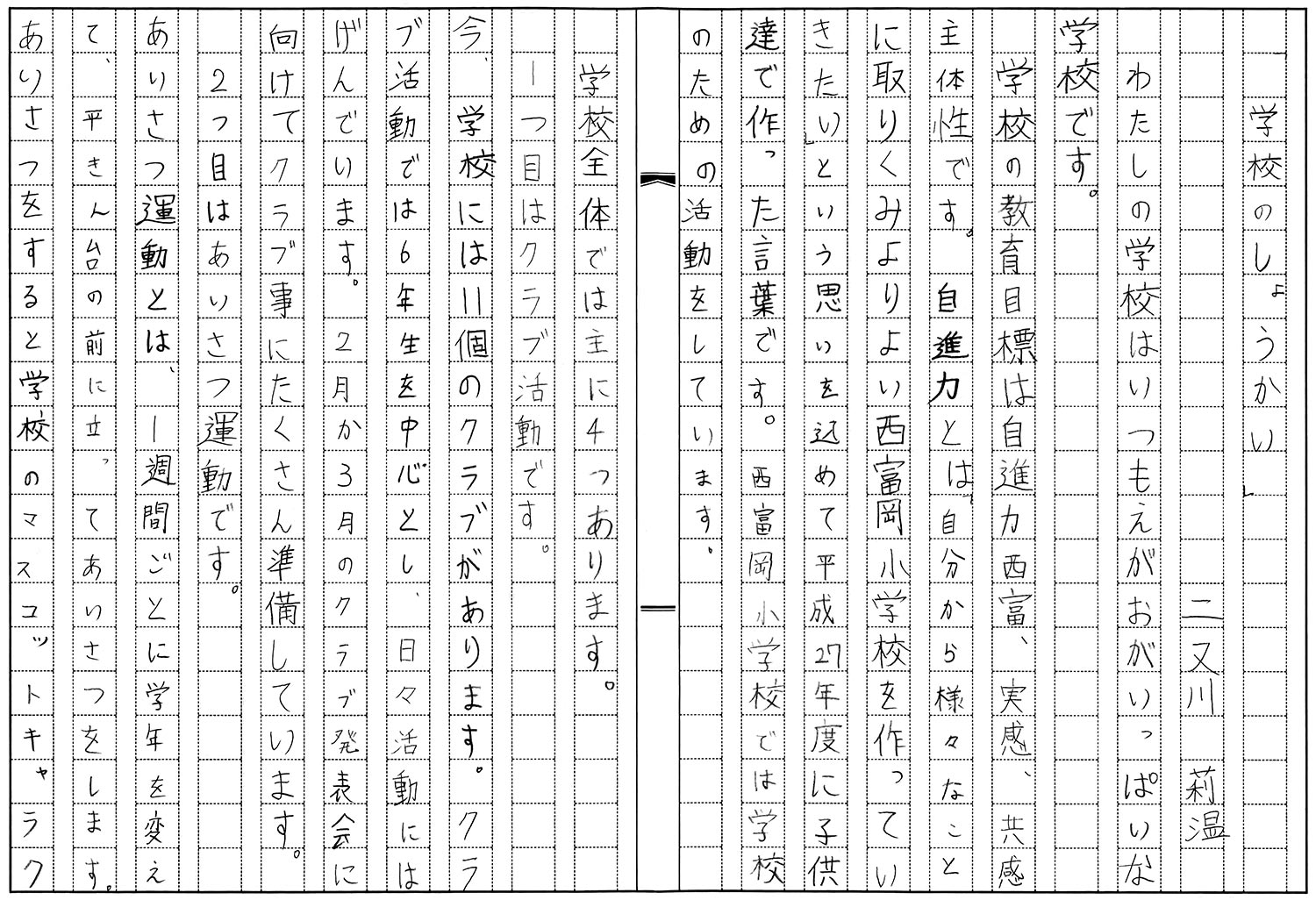 4年生 二又川 莉温 「学校のしょうかい」
