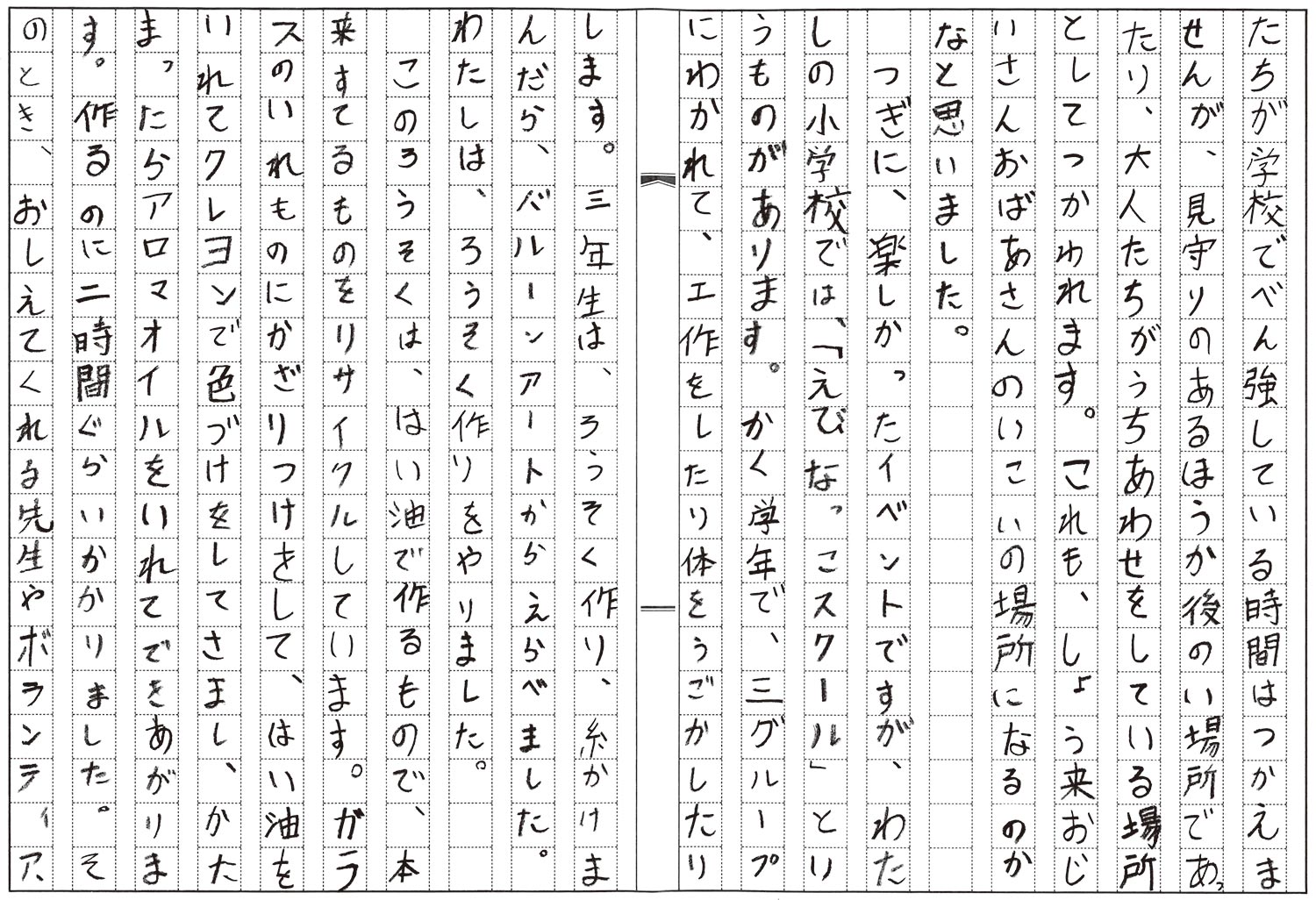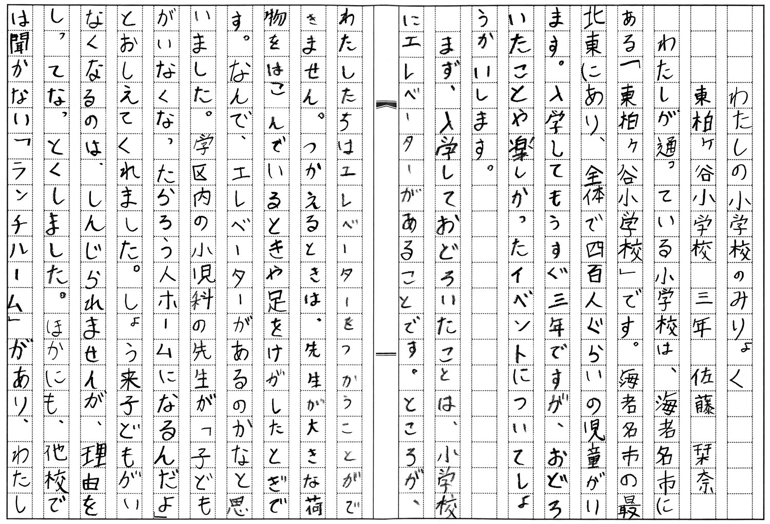 3年生 佐藤 栞奈 わたしの小学校のみりょく