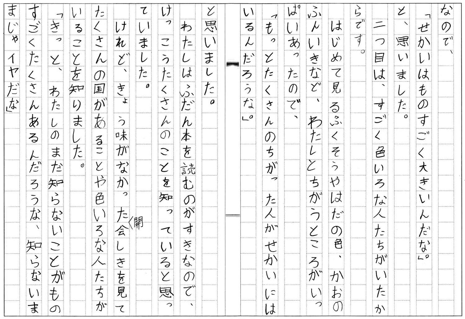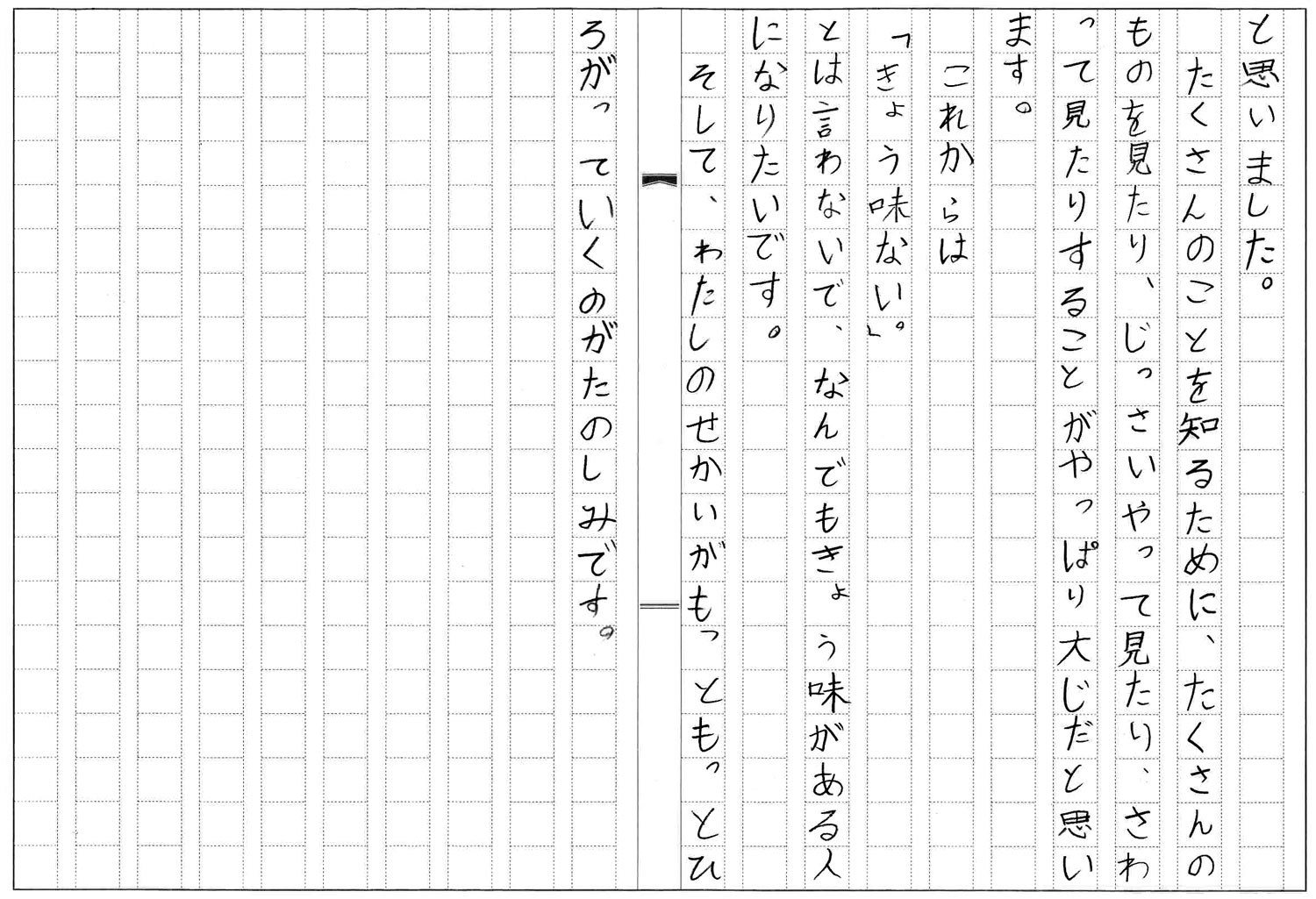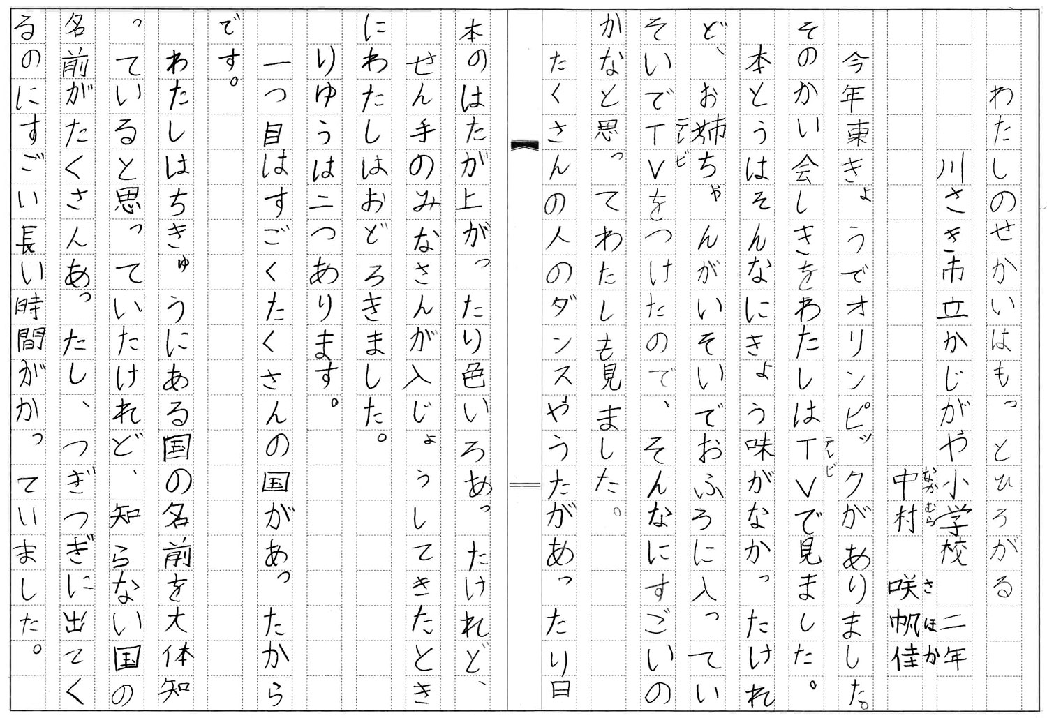 2年生 中村 咲帆佳「わたしのせかいはもっとひろがる」
