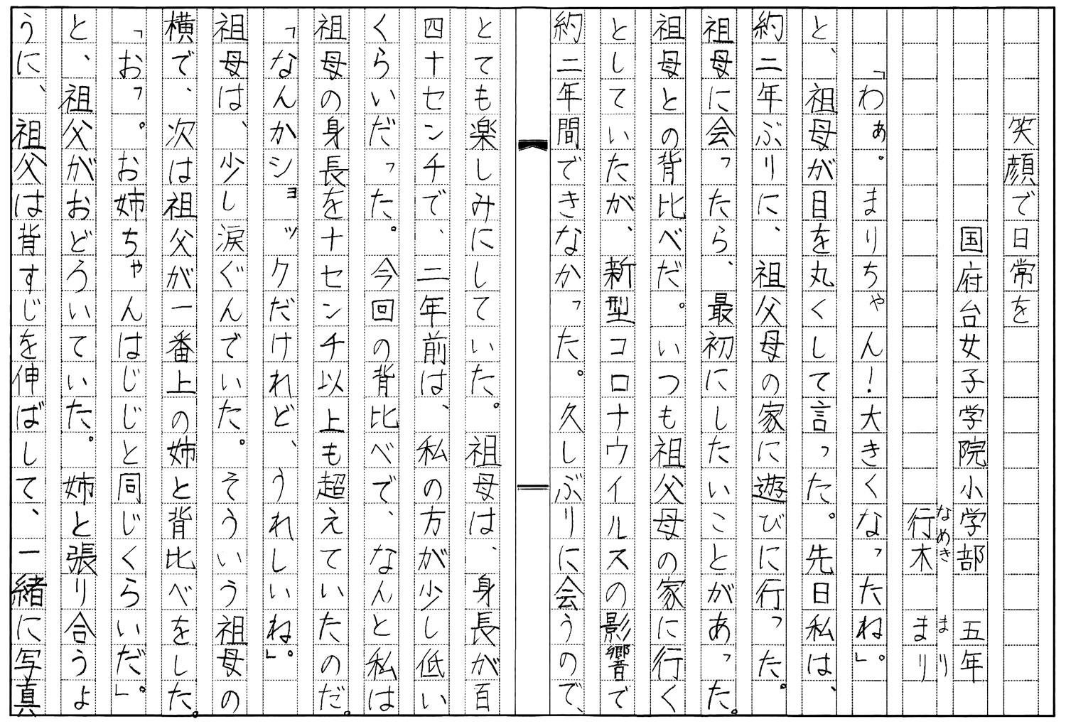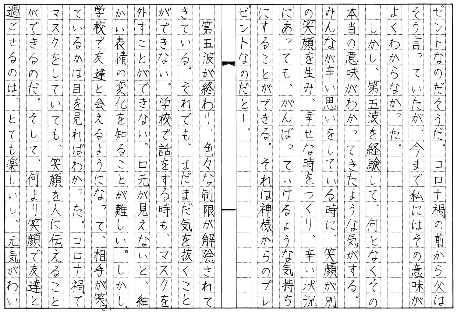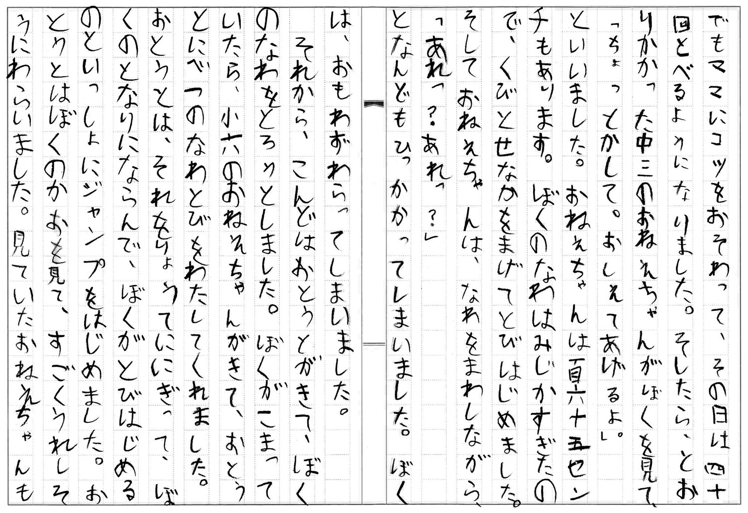 2年生 中村 咲帆佳「わたしのせかいはもっとひろがる」