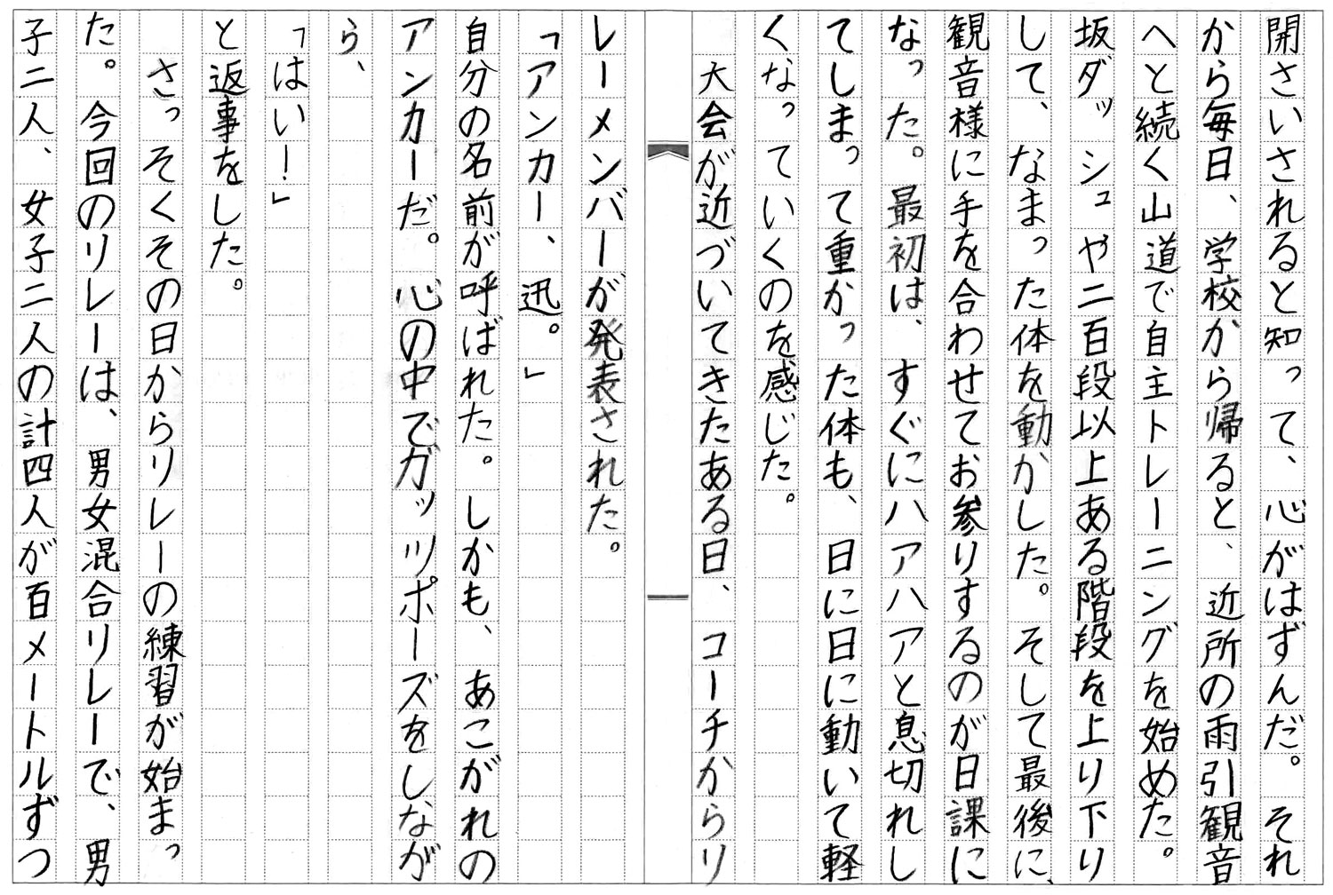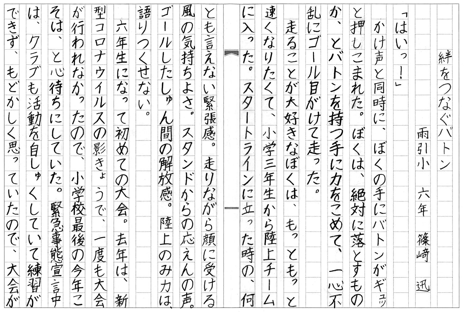 6年生 篠﨑 迅「絆をつなぐバトン」