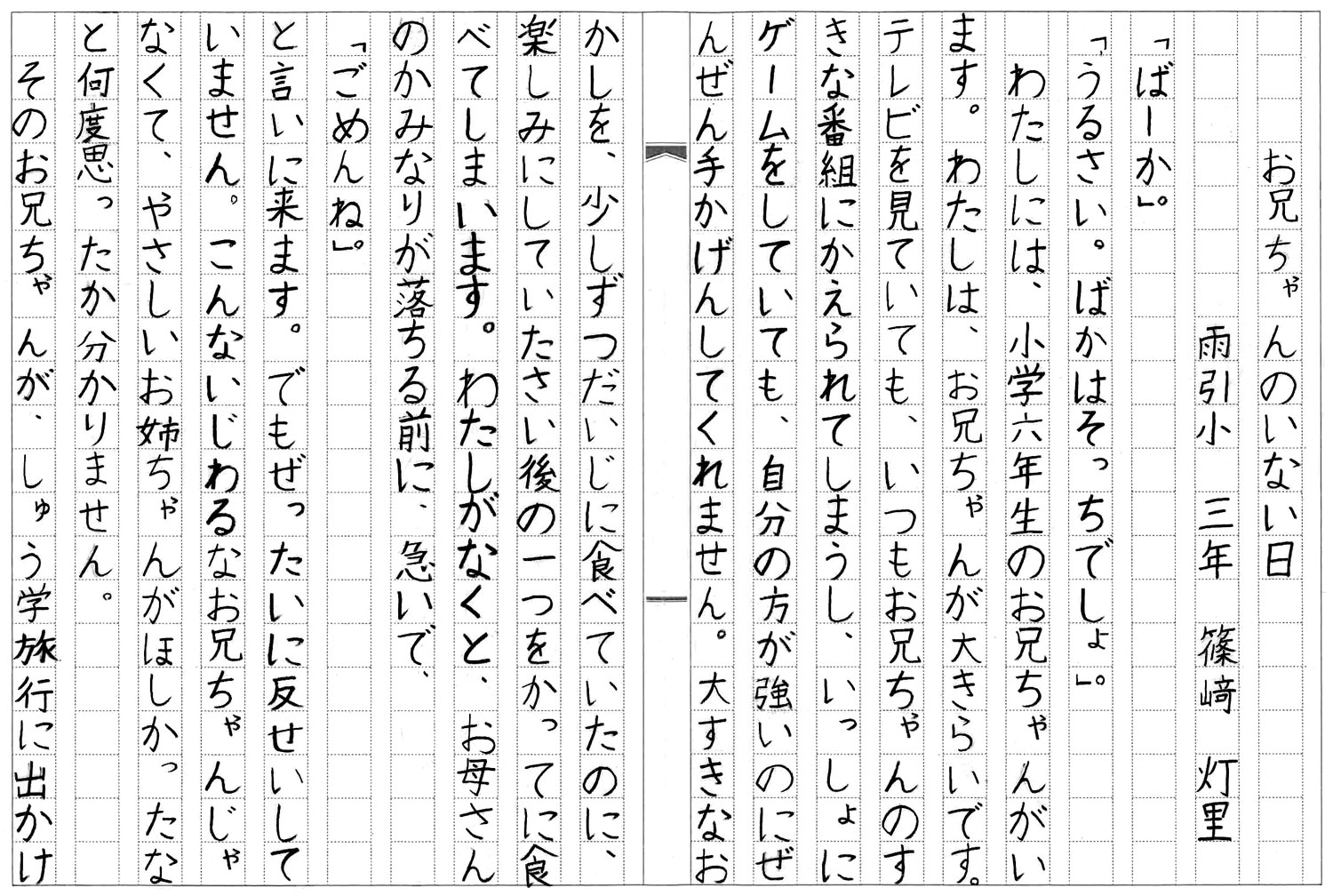 3年生 篠﨑 灯里「お兄ちゃんのいない日」