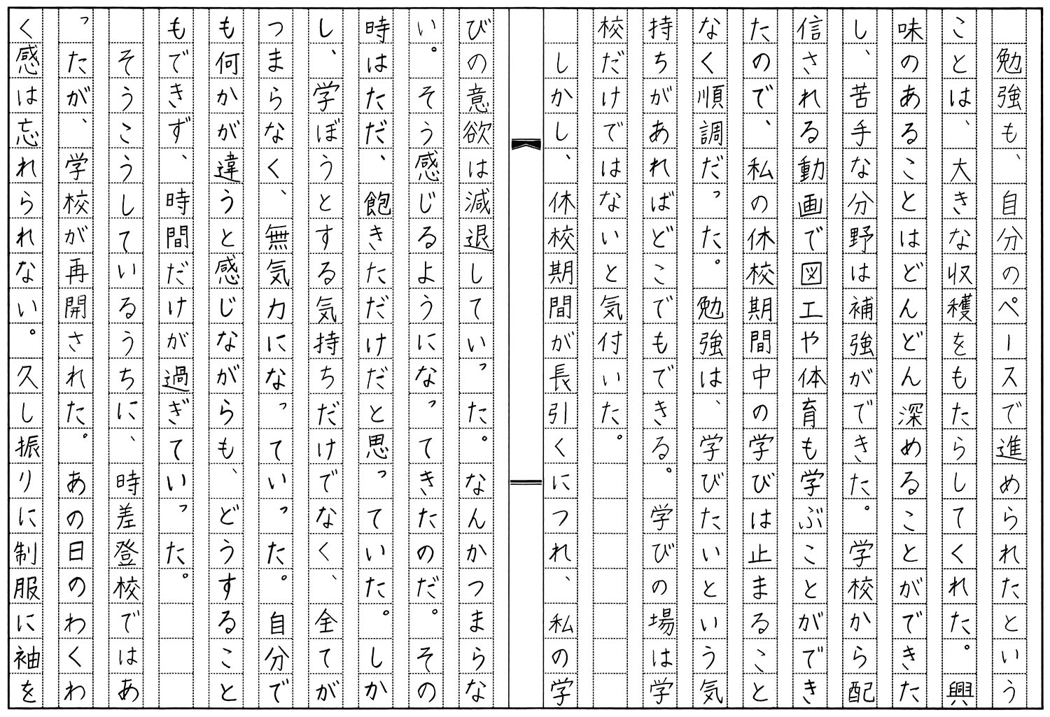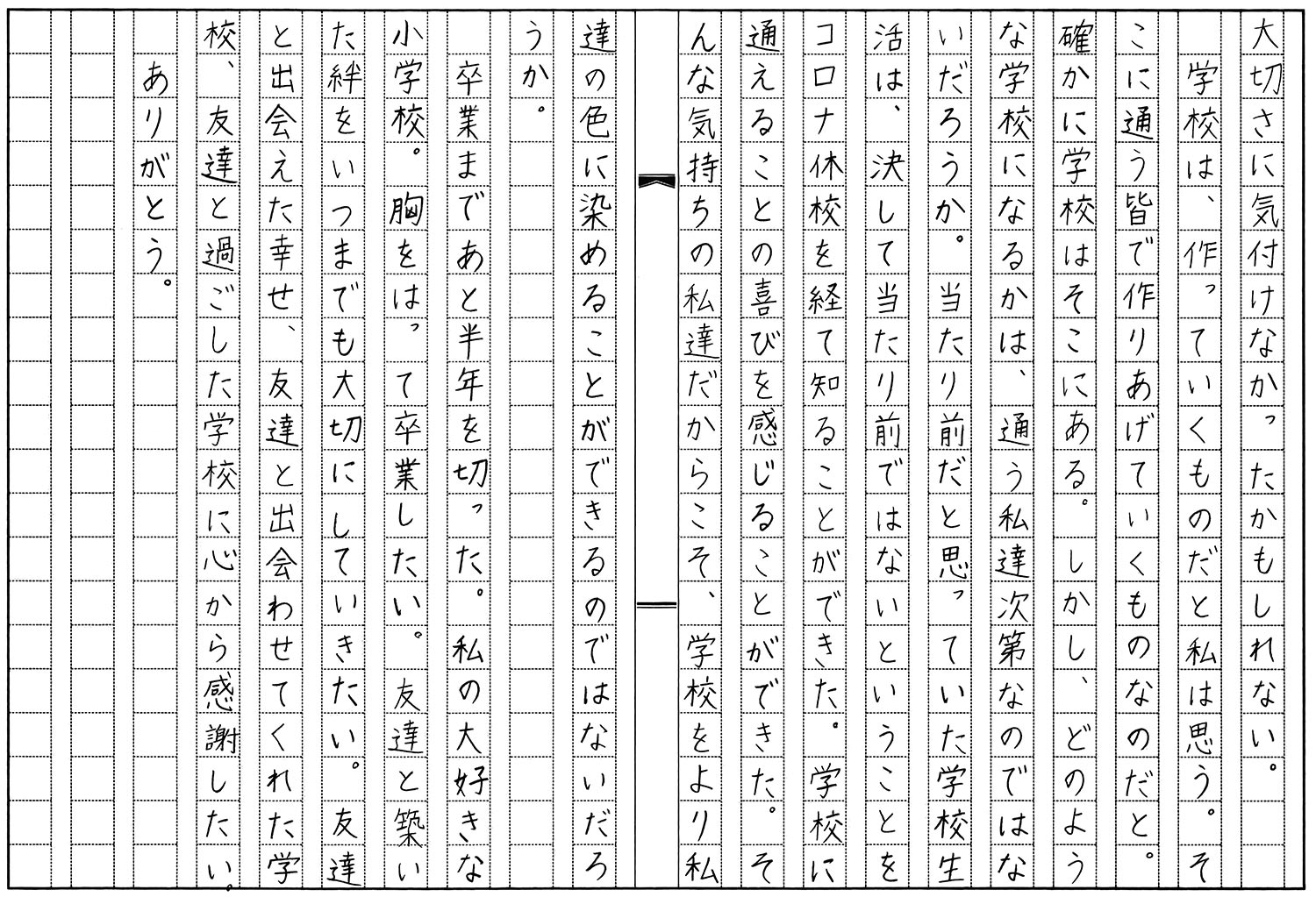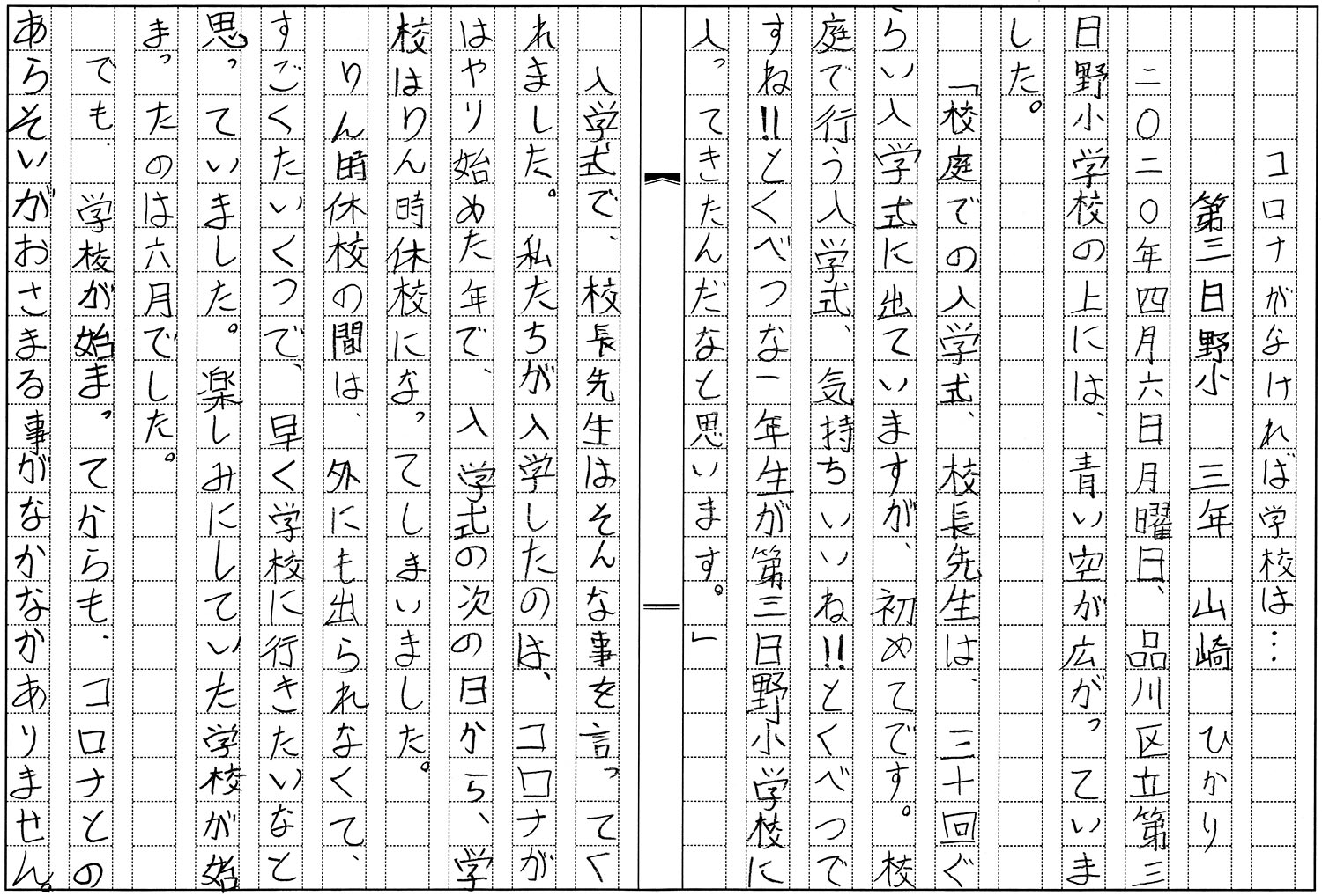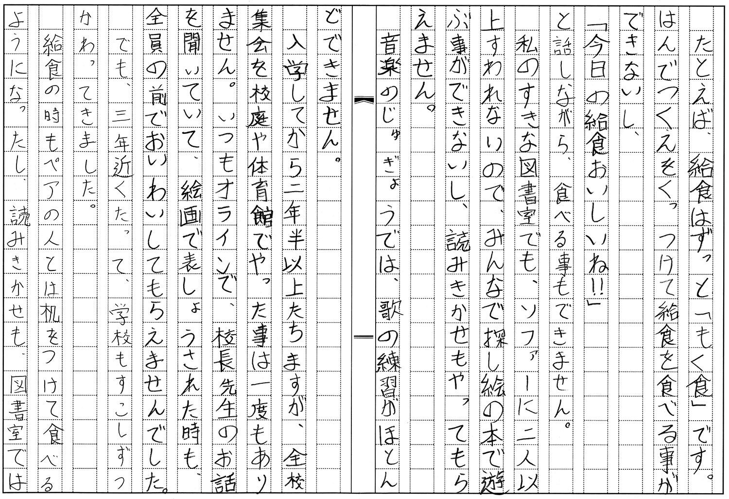 3年生 山崎 ひかり さん「コロナがなければ学校は・・・」