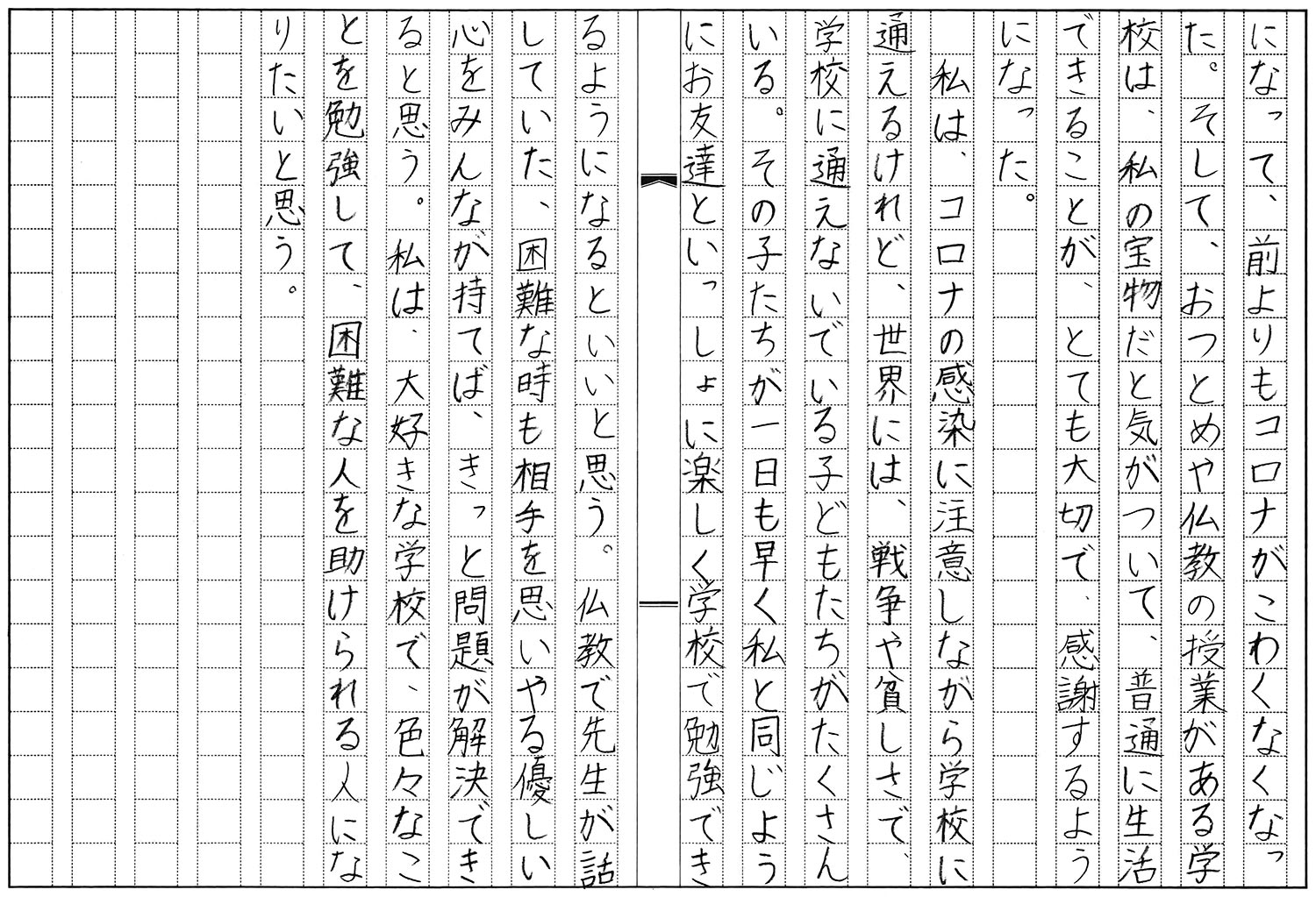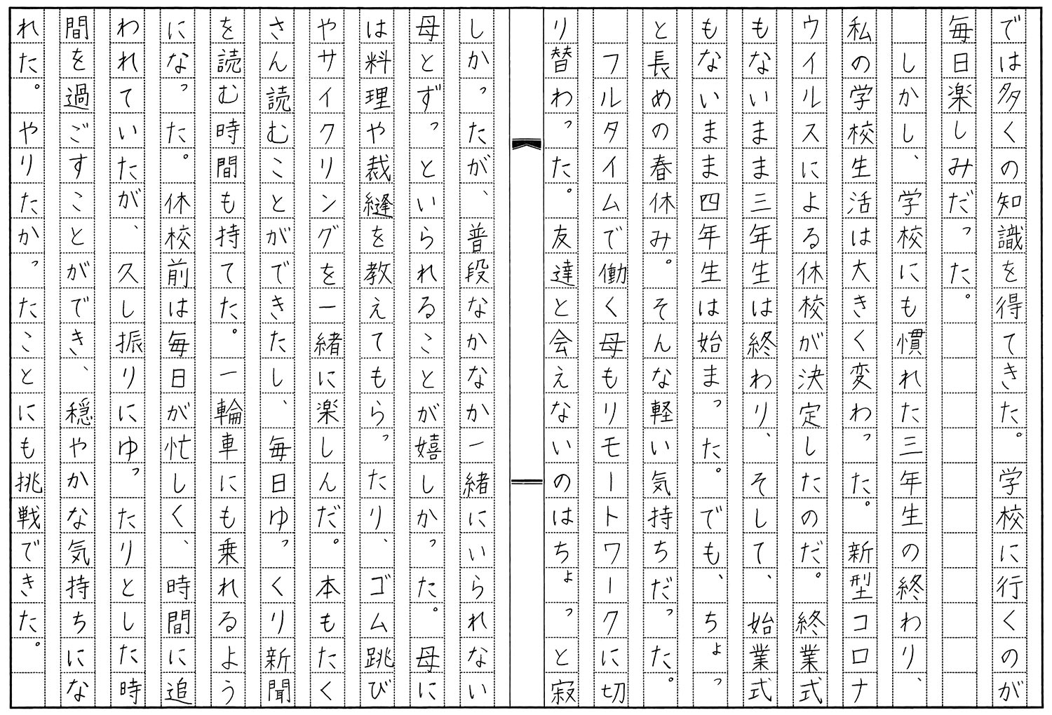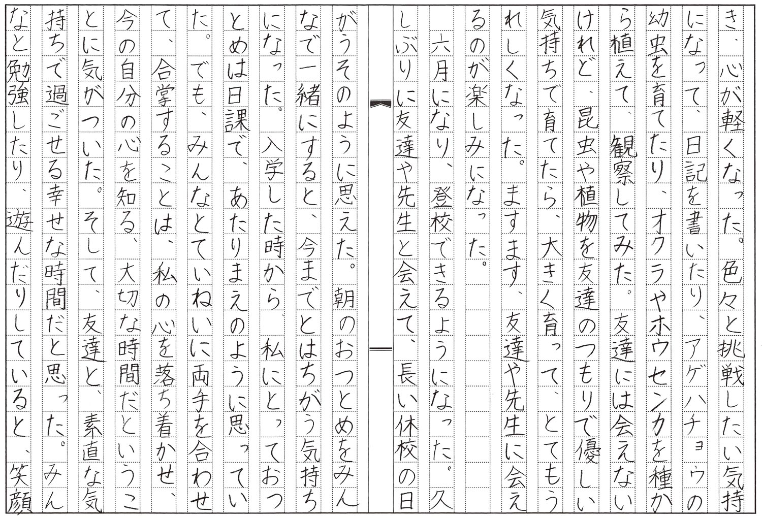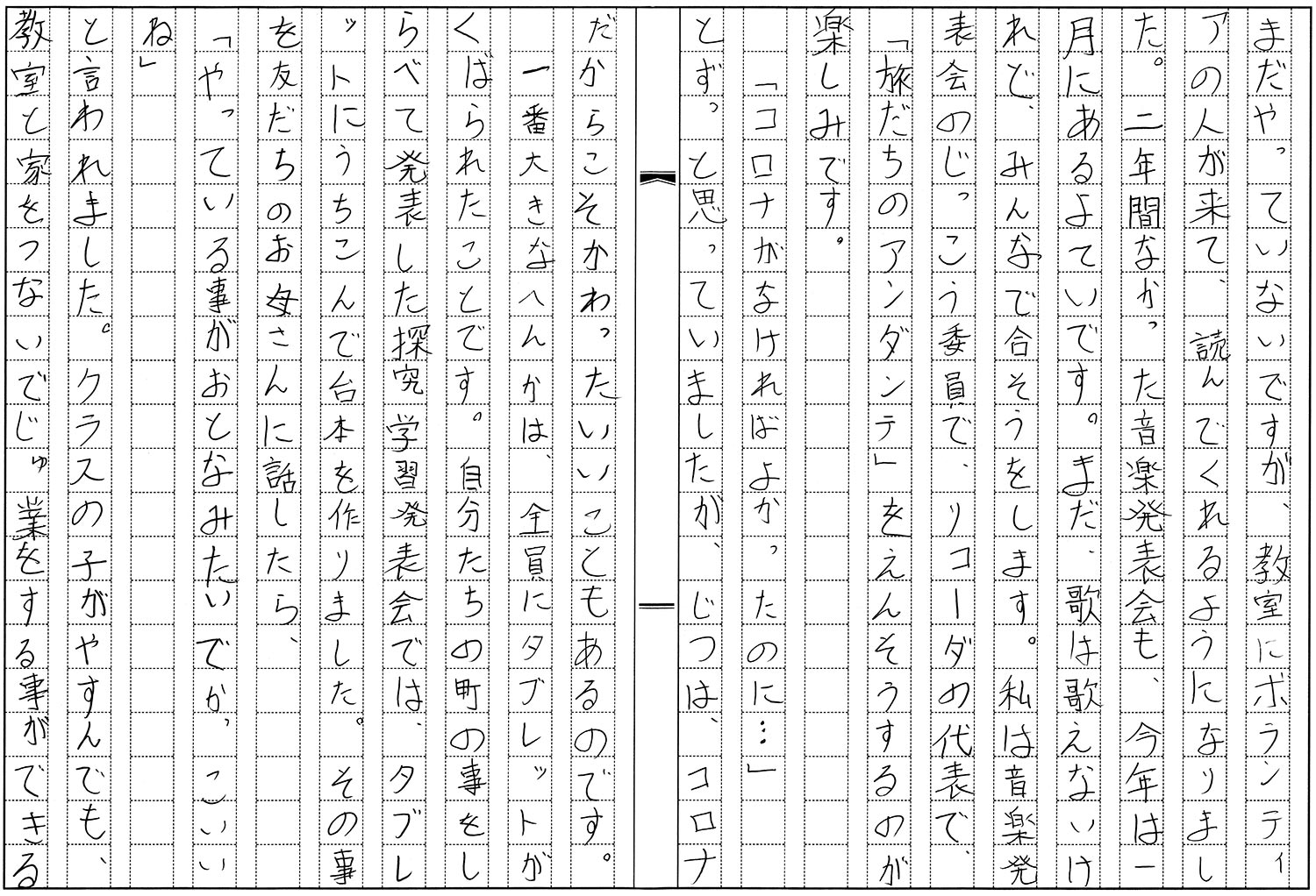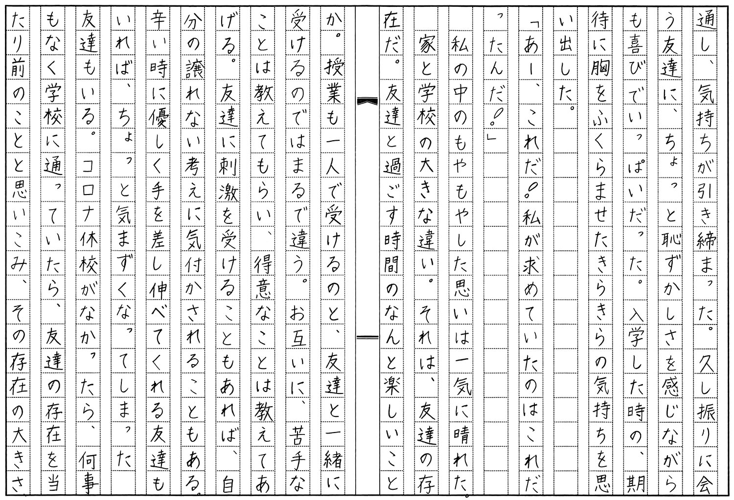 3年生 山崎 ひかり さん「コロナがなければ学校は・・・」