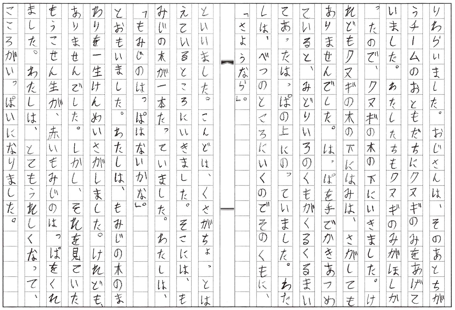 1年生 佐々木 瑶美 さん「人とあきの出あい」