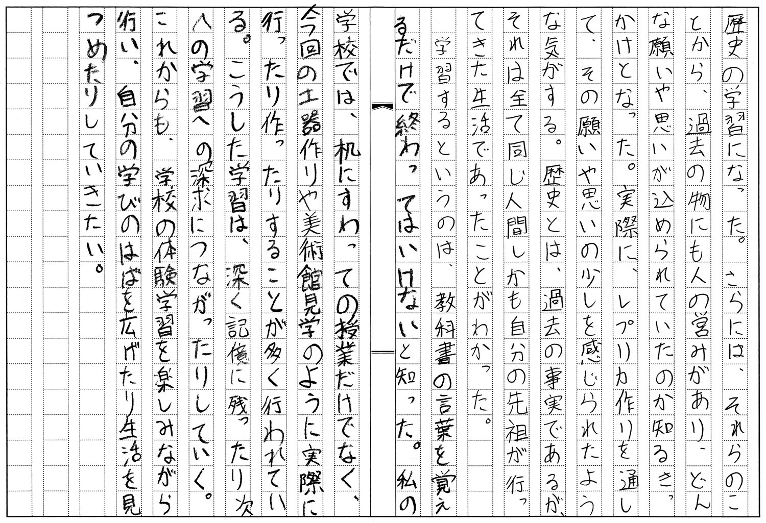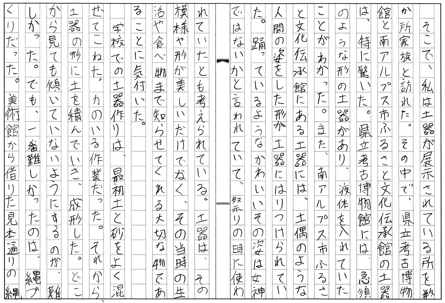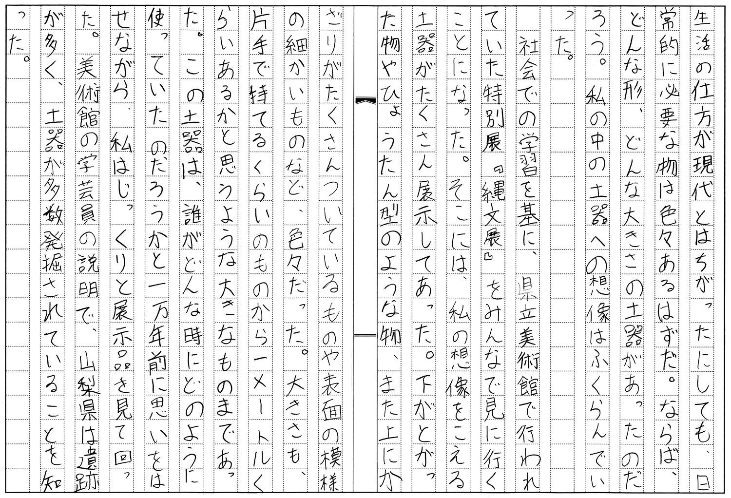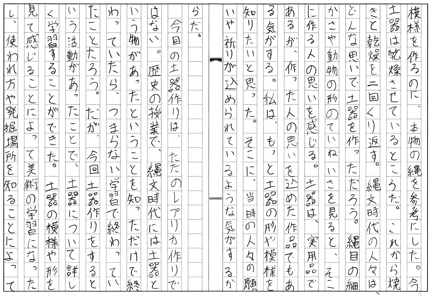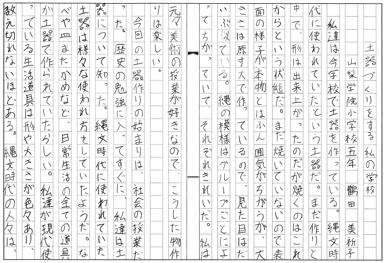5年生 鶴田 美祈子 さん「土器づくりをする私の学校」
