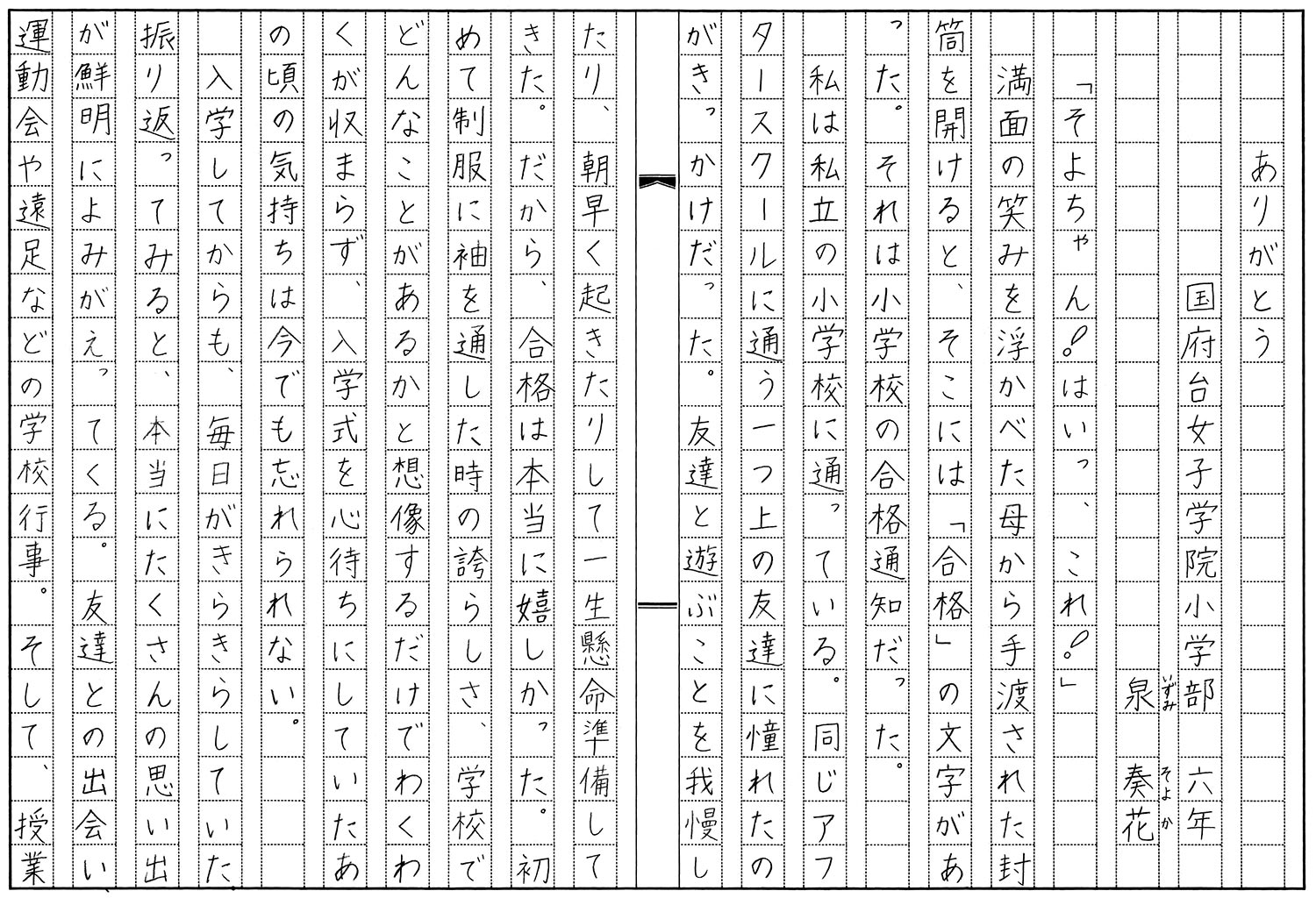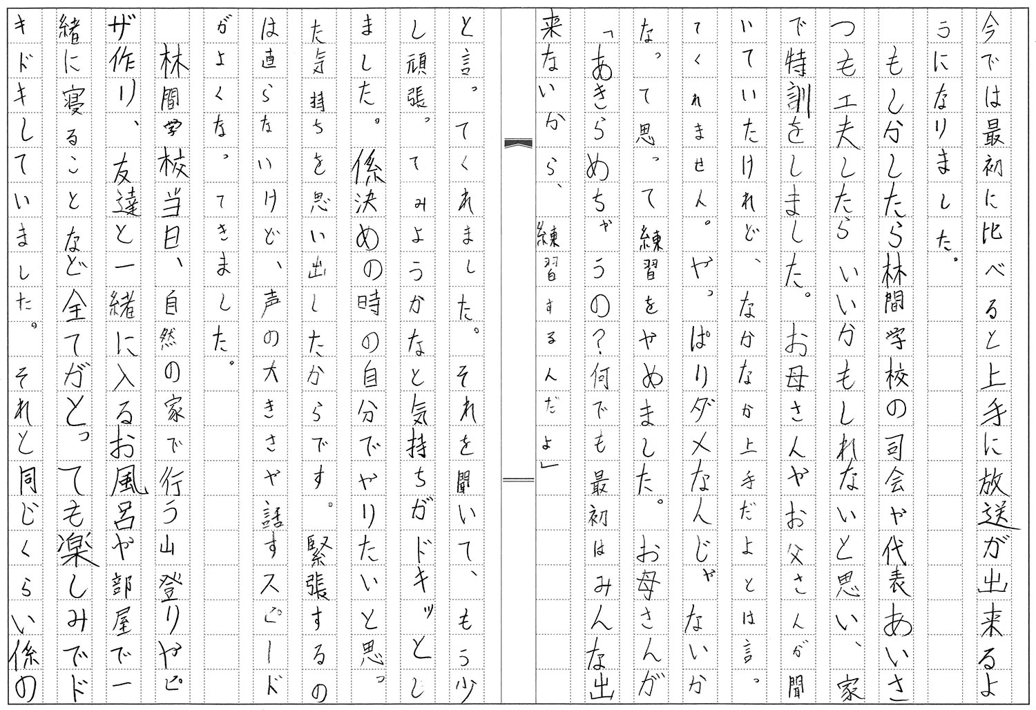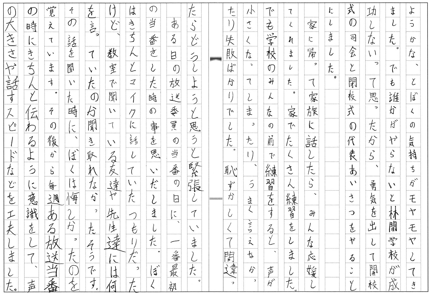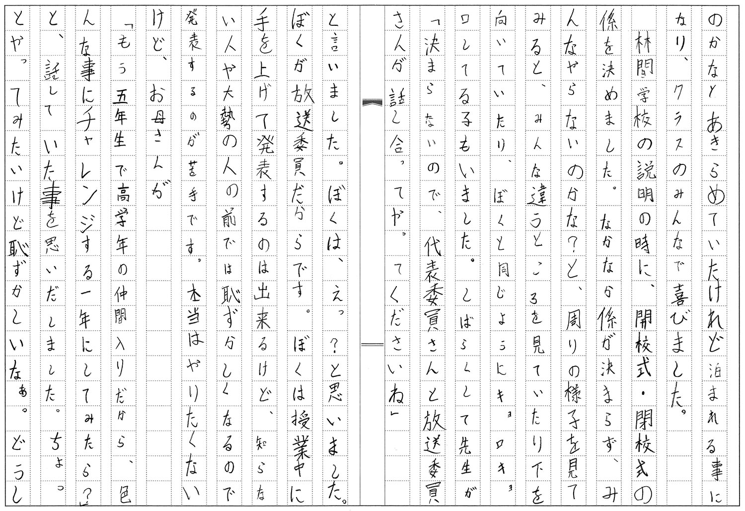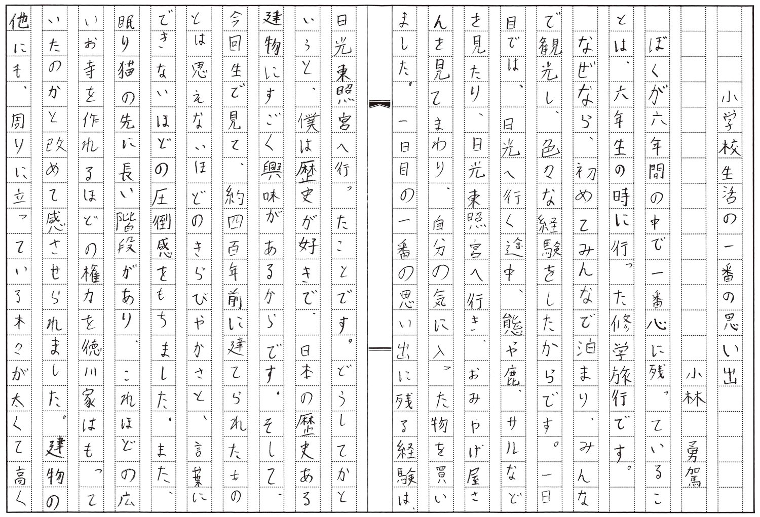 6年生 小林 勇駕 さん「小学校生活の一番の思い出」