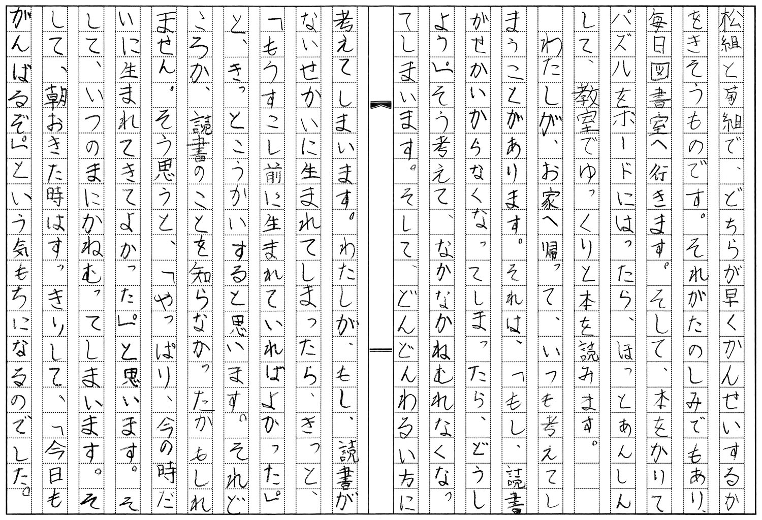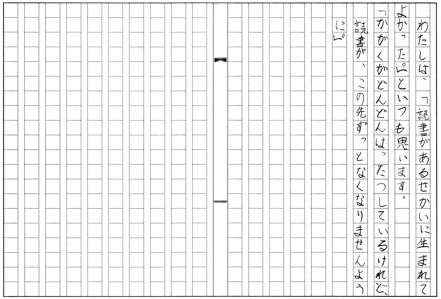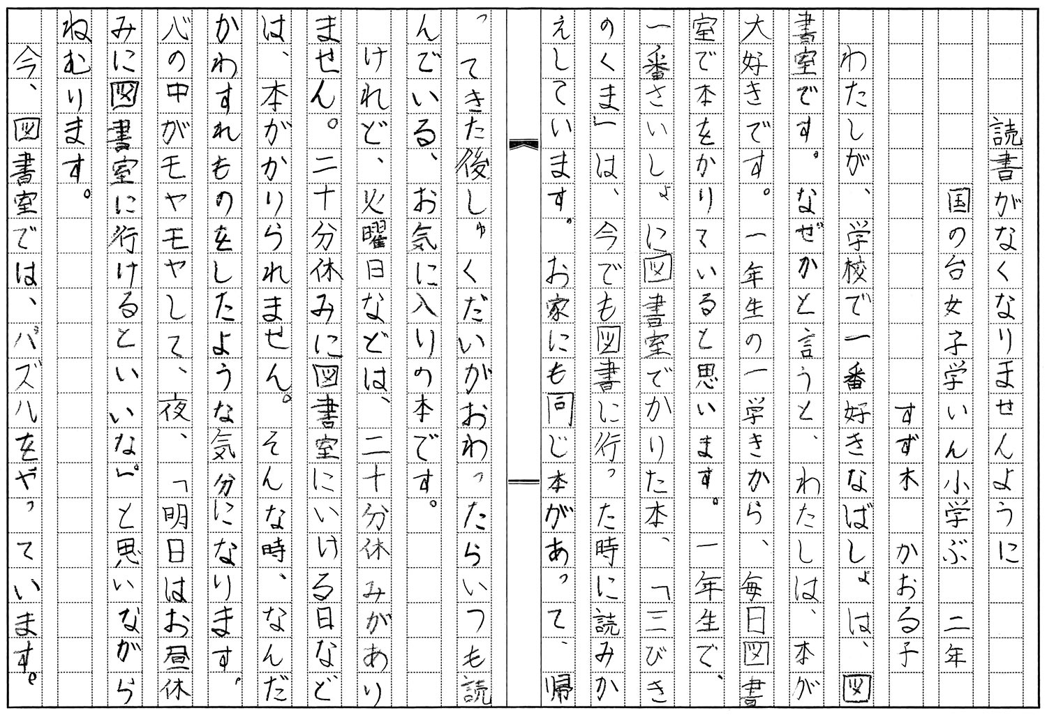 2年生 鈴木 薫子 さん「読書がなくなりませんように」
