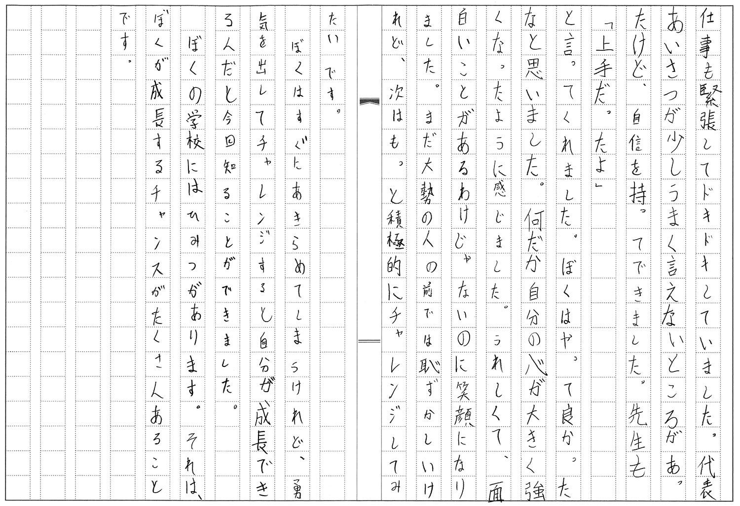 2年生 村山 生樹 さん「つながれ!ぼくらのマンモス校」