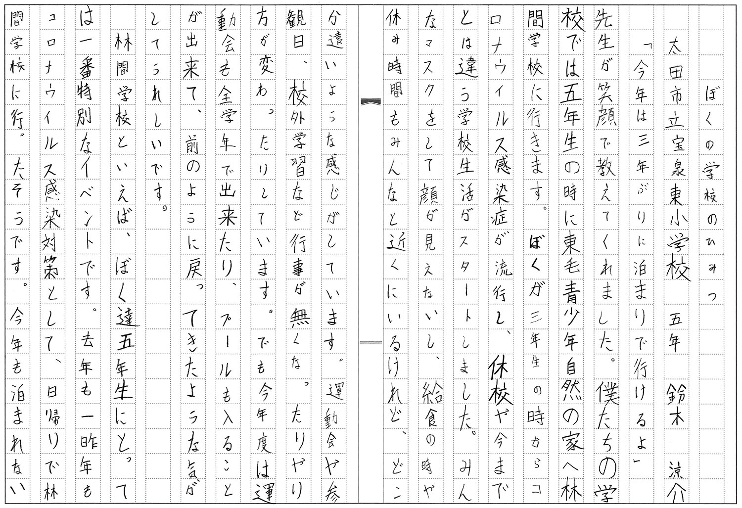 5年生 鈴木 涼介 さん「ぼくの学校のひみつ」