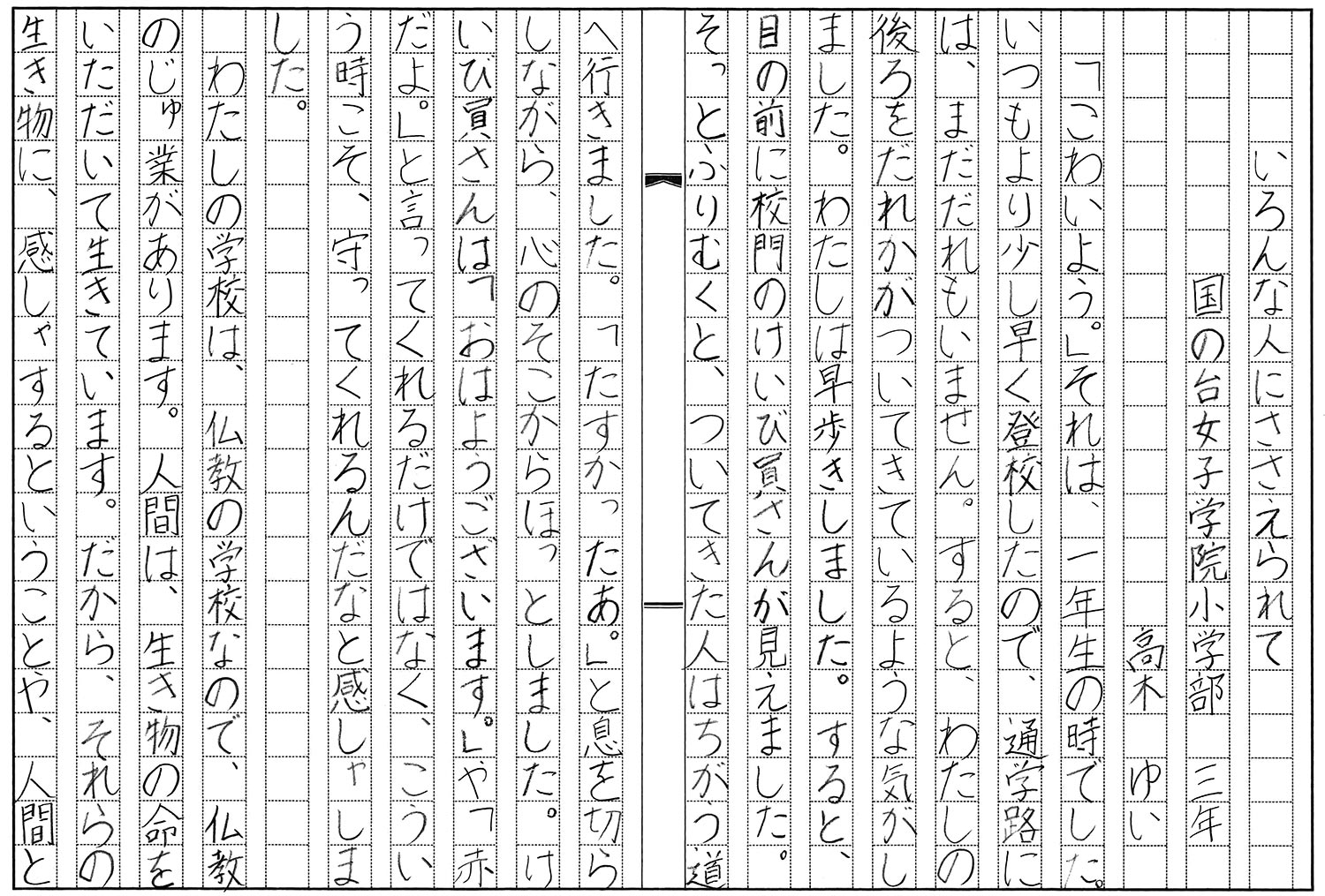 3年生 髙木 優維 さん「いろんな人にささえられて」