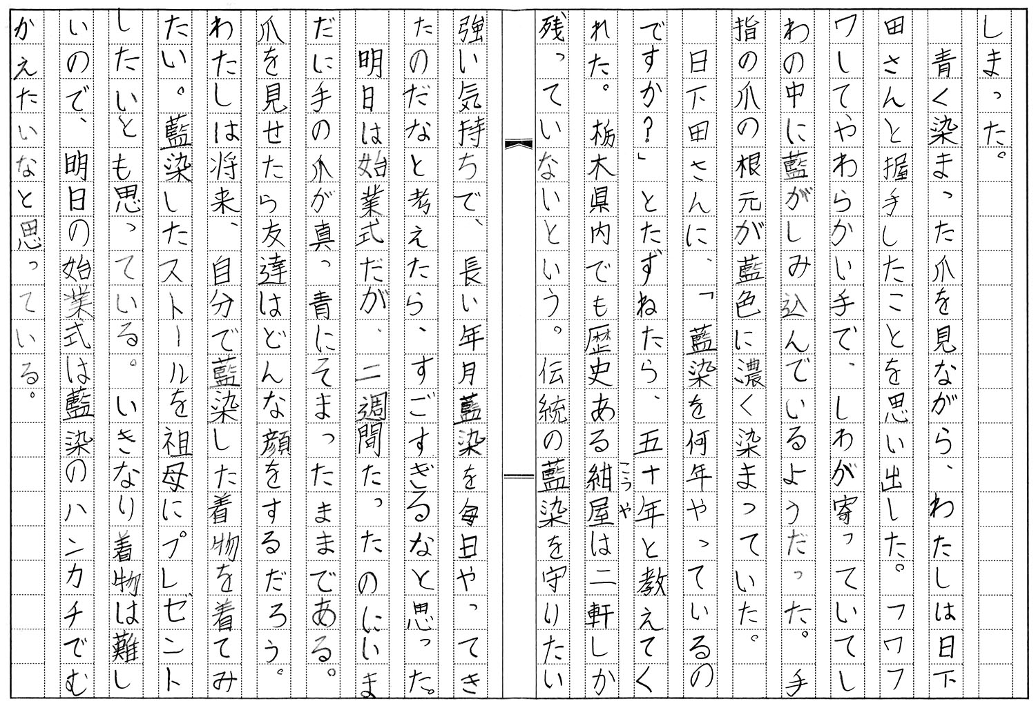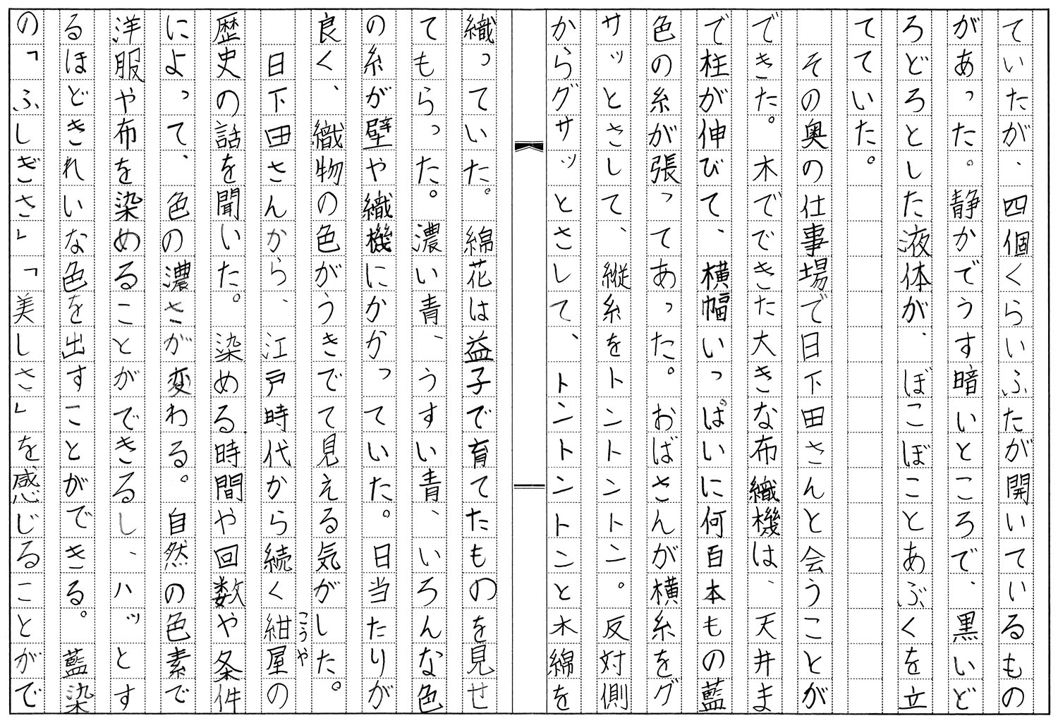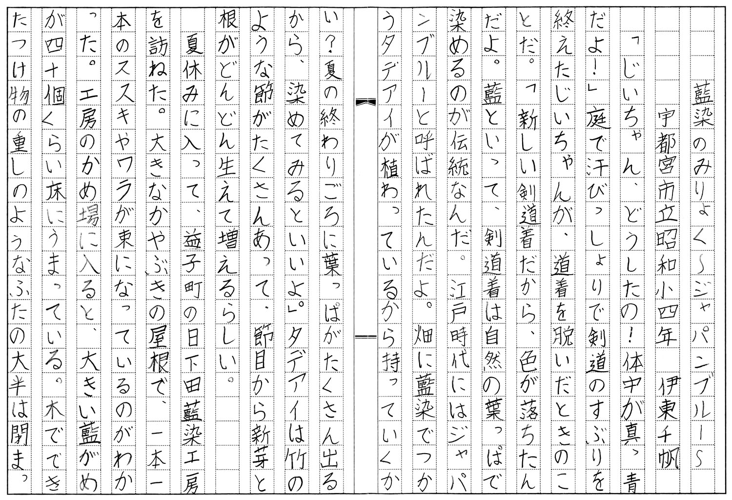 4年生 伊東 千帆 さん「藍染のみりょく~ジャパンブルー~」