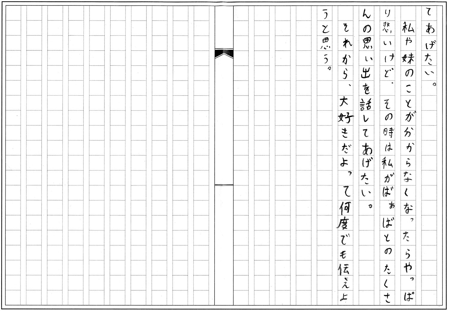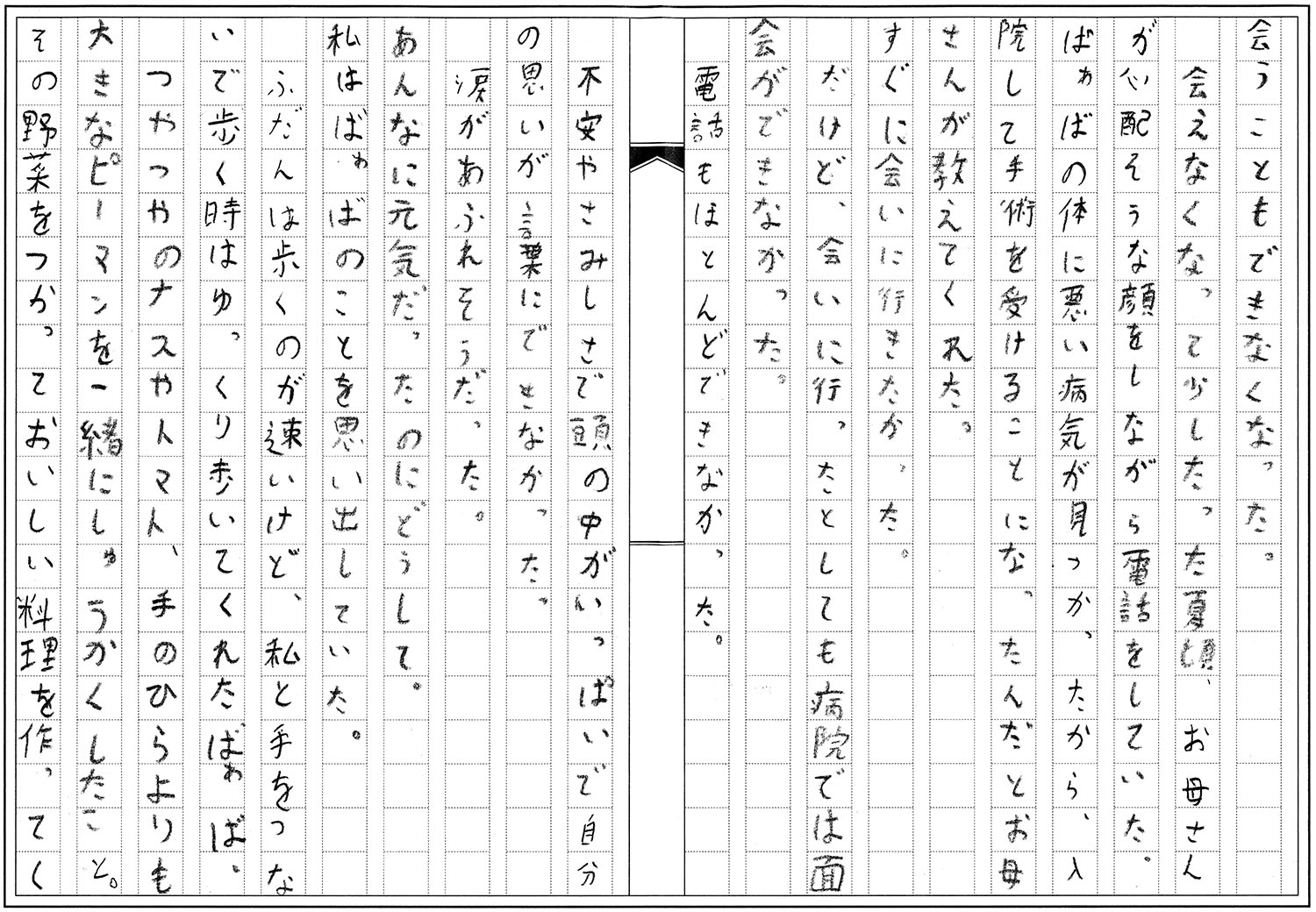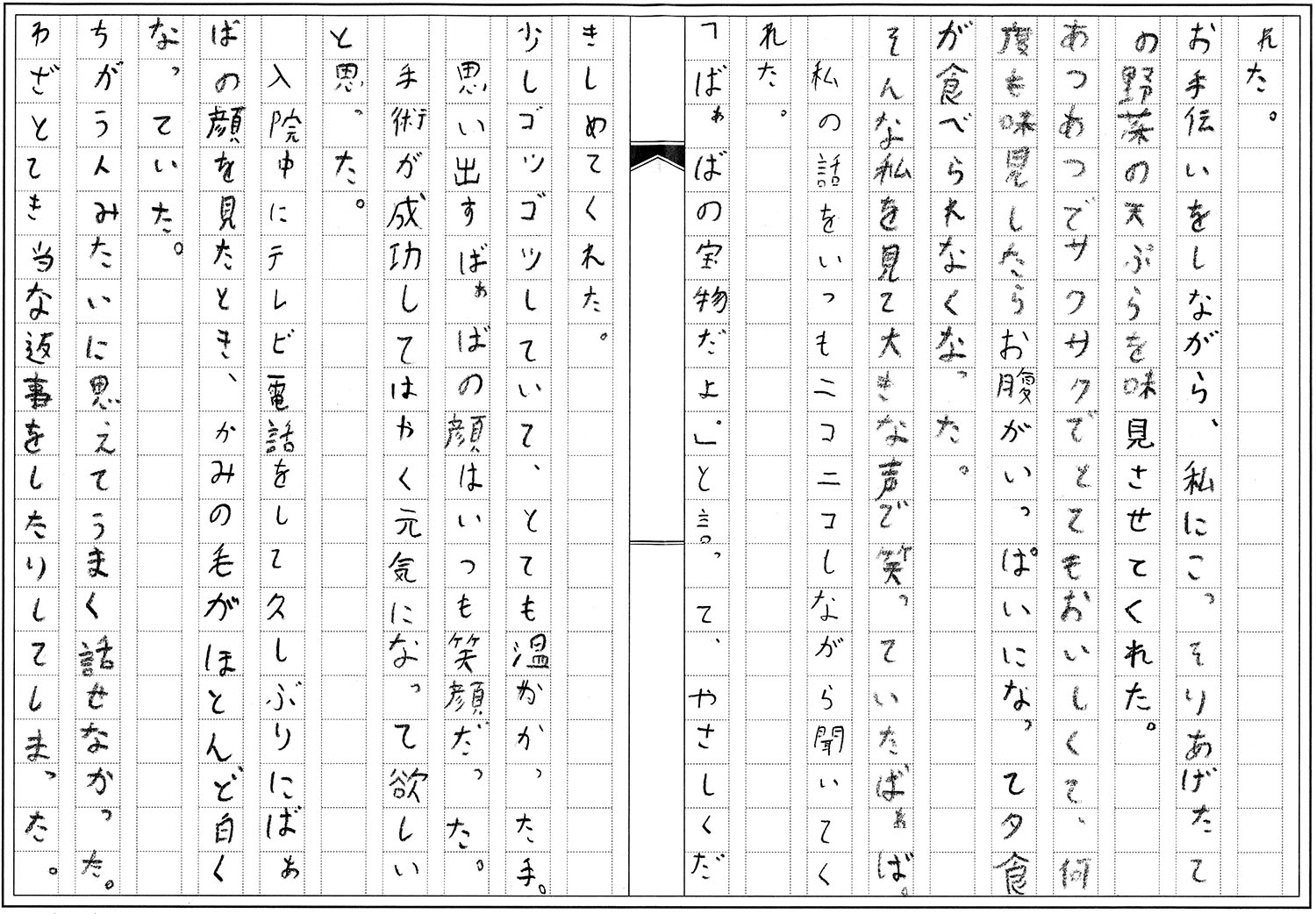 3年生 原川 綾芽 さん「ばぁばとの思い出」