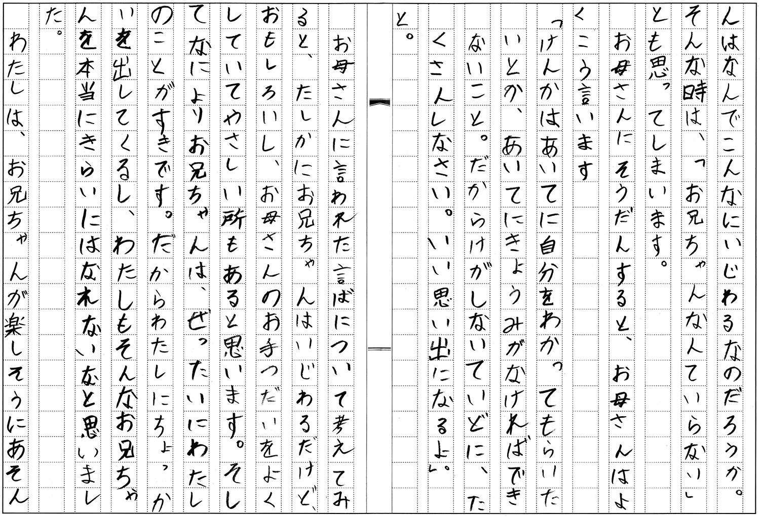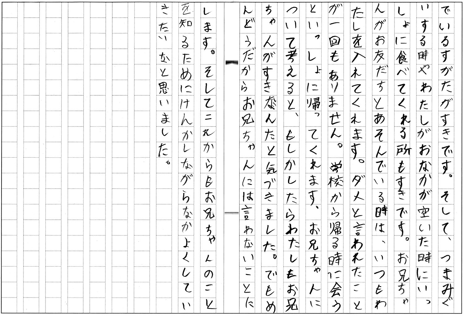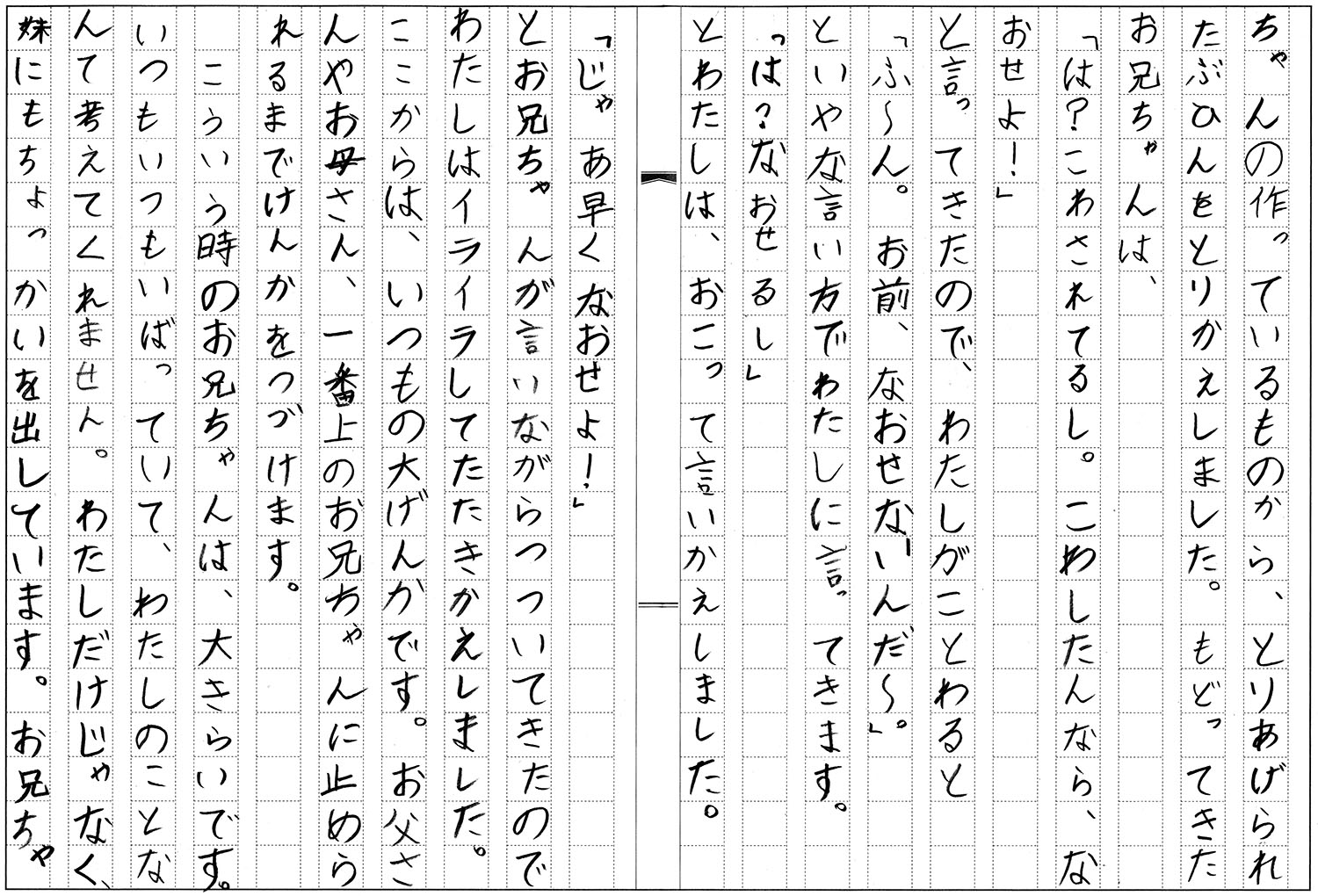 2年生 副島 希史 さん「わたしとお兄ちゃん」