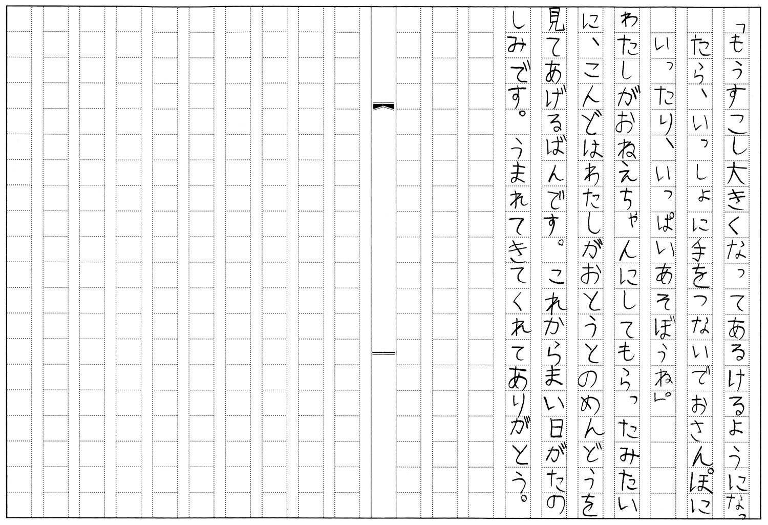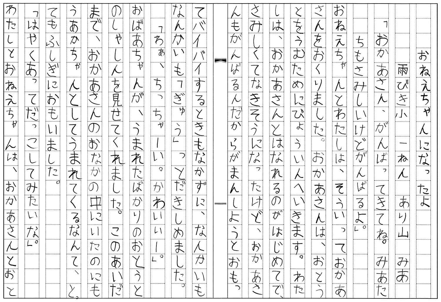 1年生 有山 望空 さん「おねえちゃんになったよ」