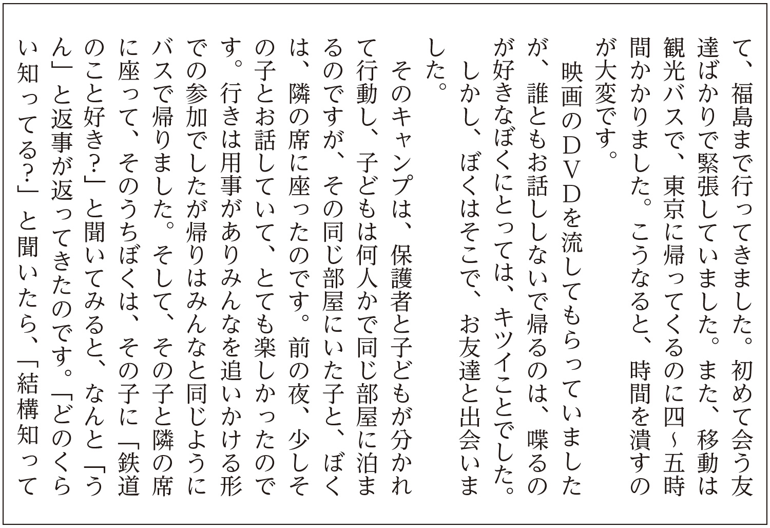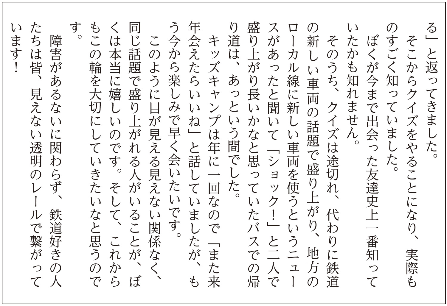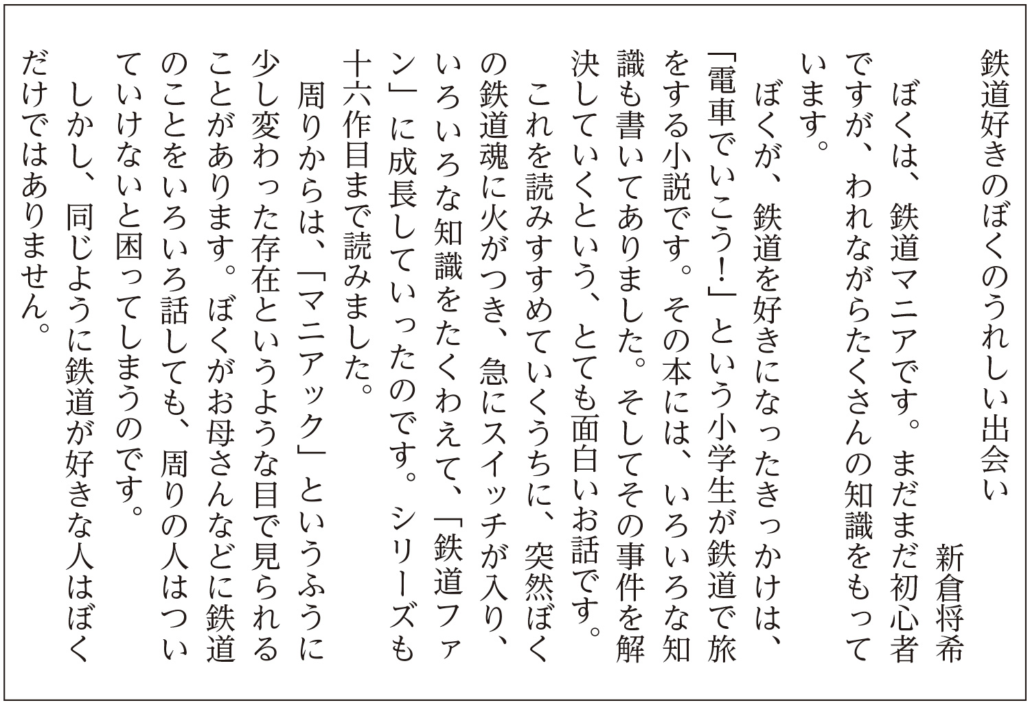 6年生 新倉 将希 さん「鉄道好きのぼくのうれしい出会い」