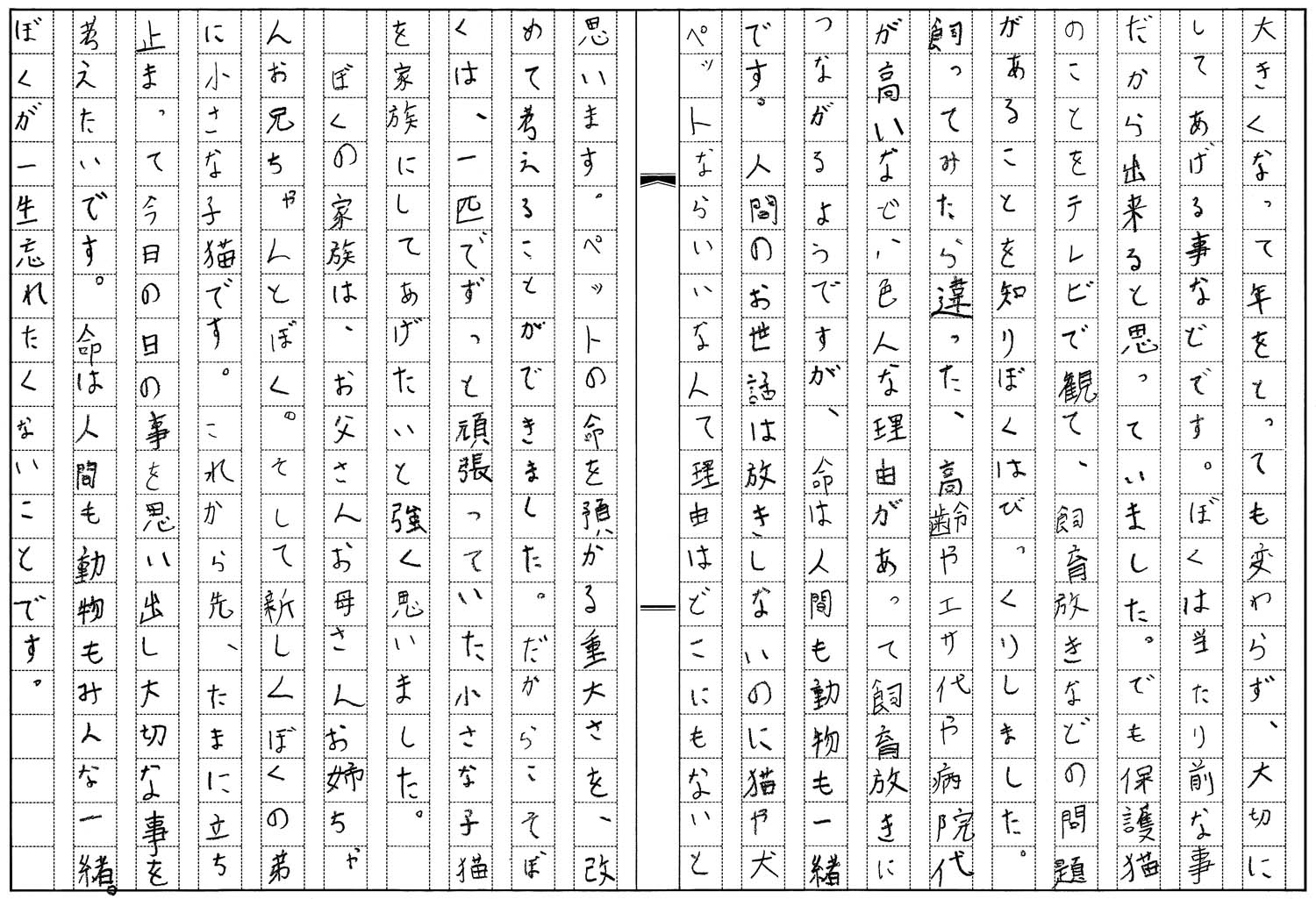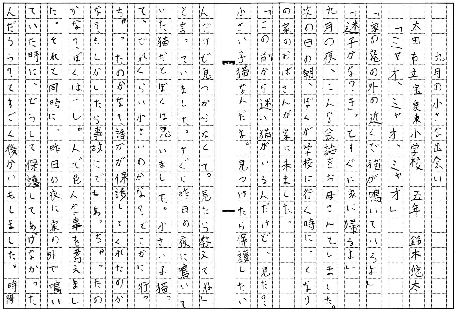 5年生 鈴木 悠太 さん「九月の小さな出会い」