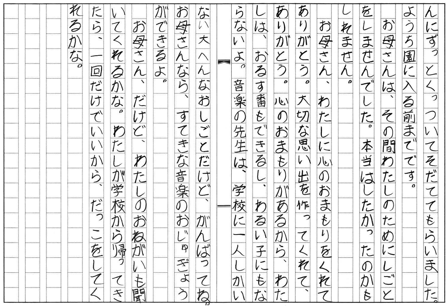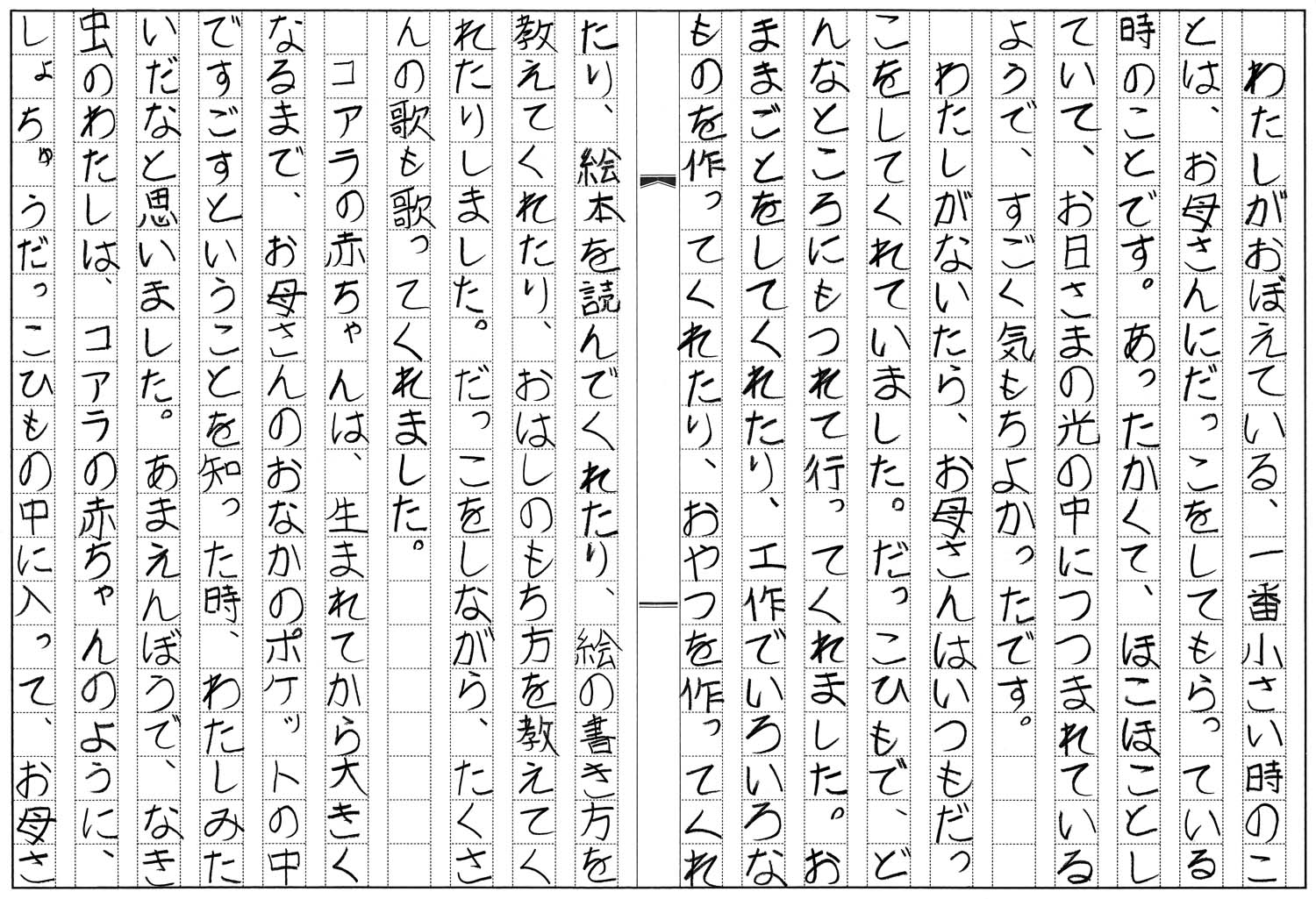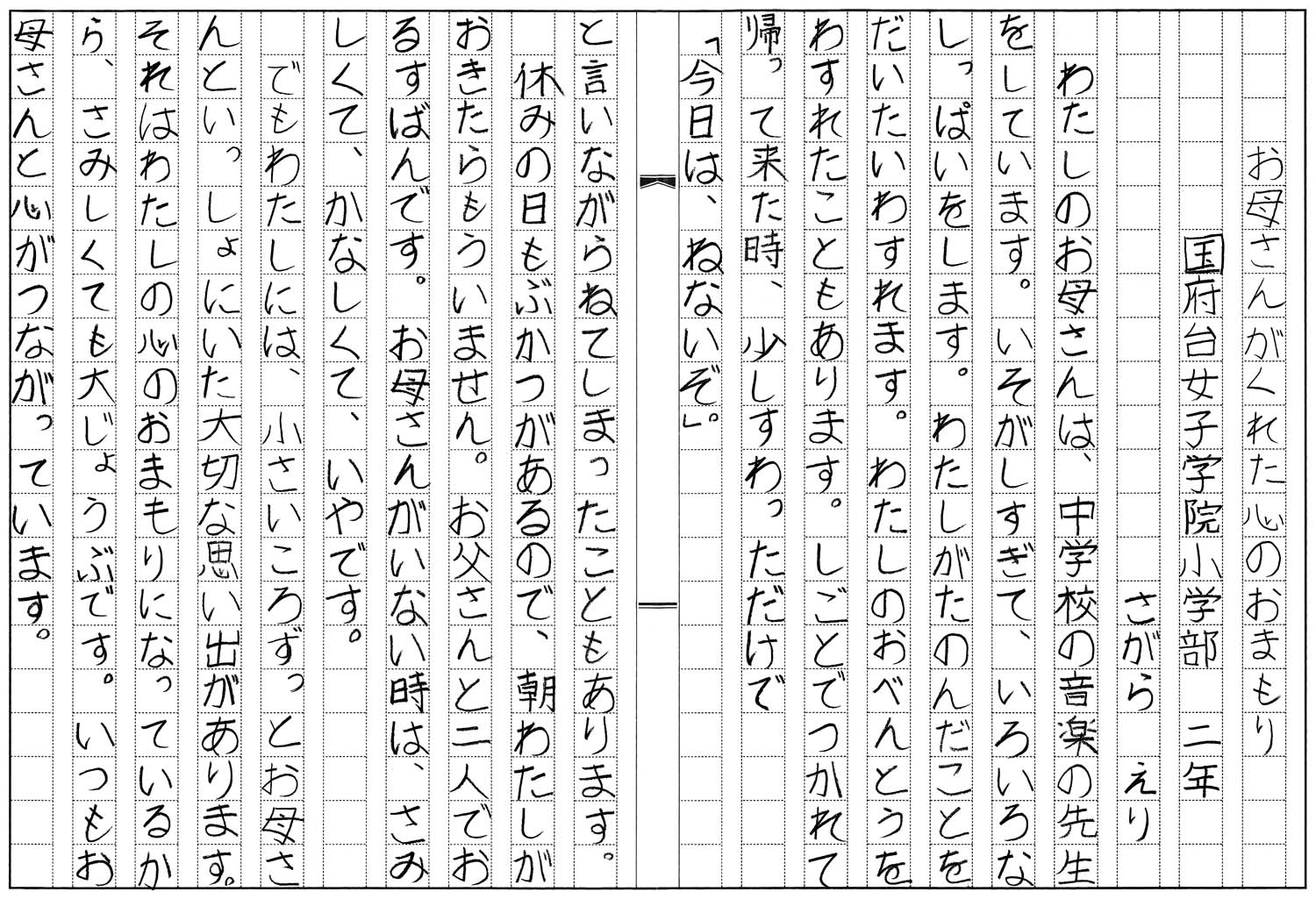 2年生 相樂 恵里 さん「お母さんがくれた心のおまもり」
