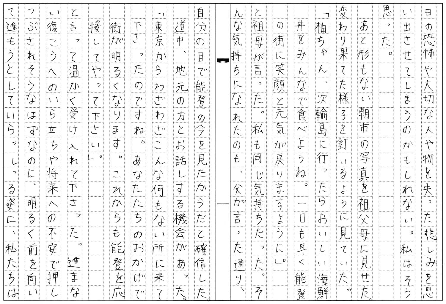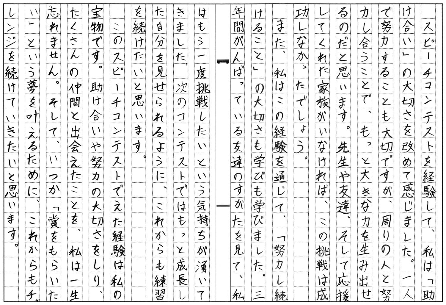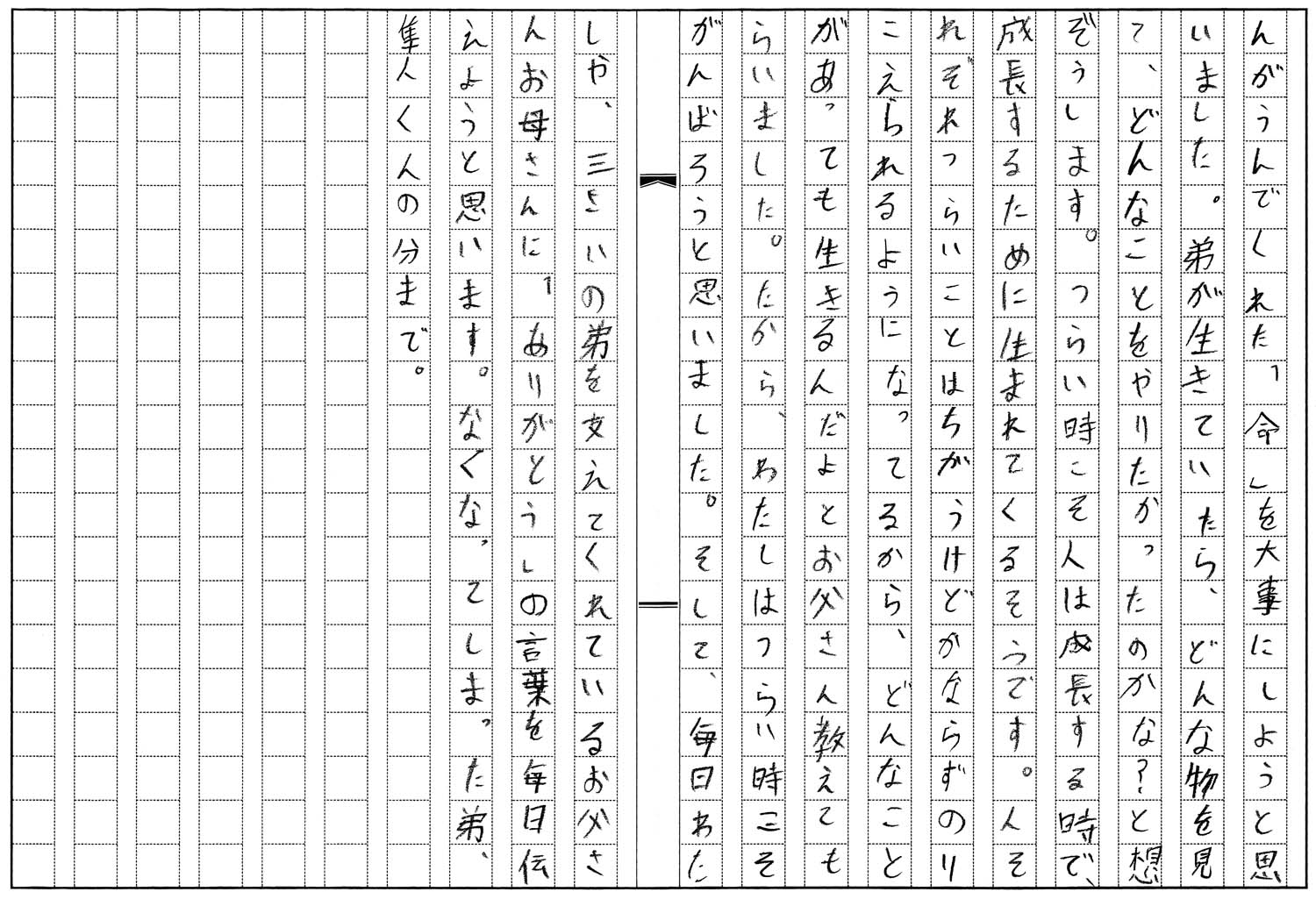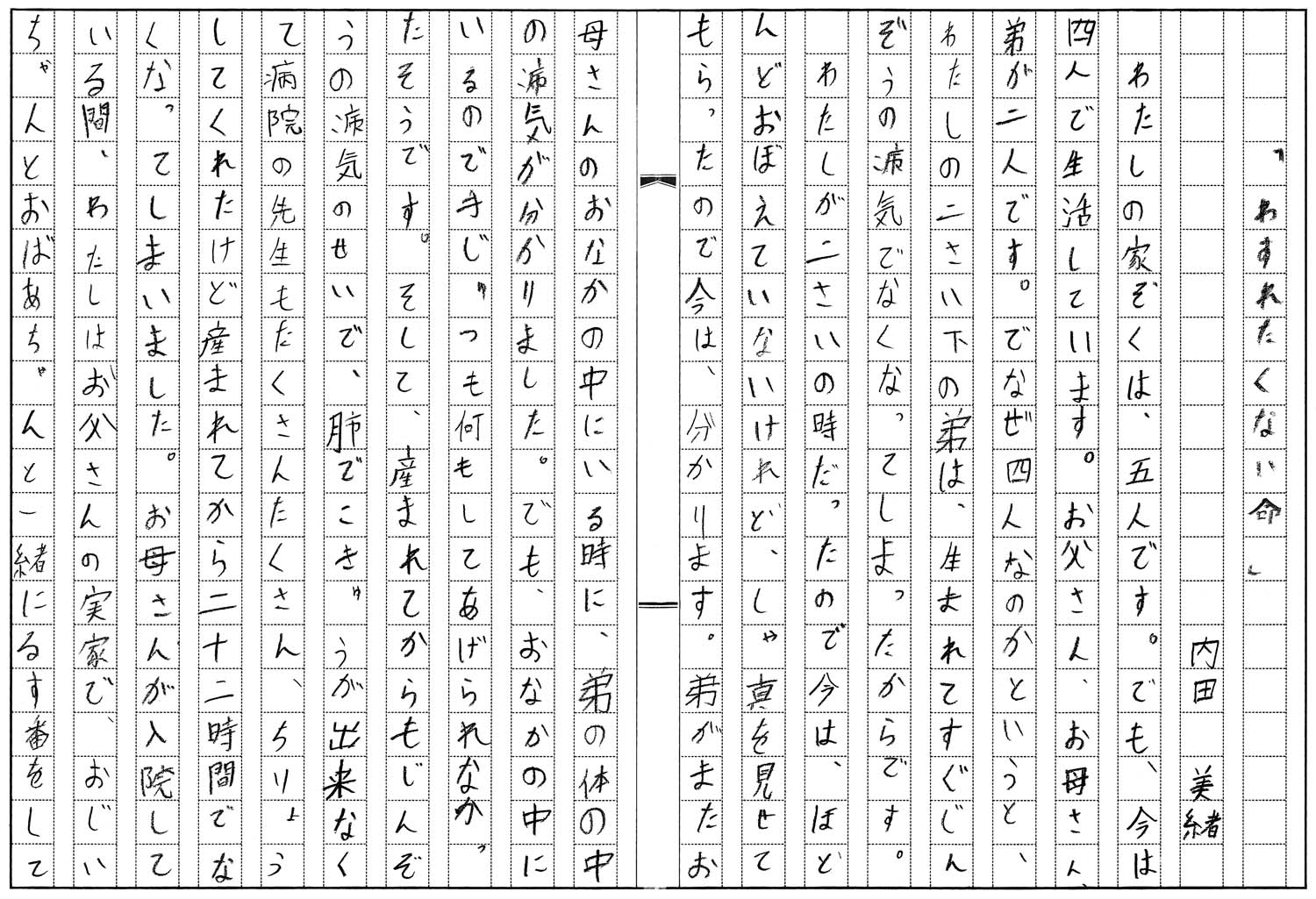 2年生 相樂 恵里 さん「お母さんがくれた心のおまもり」