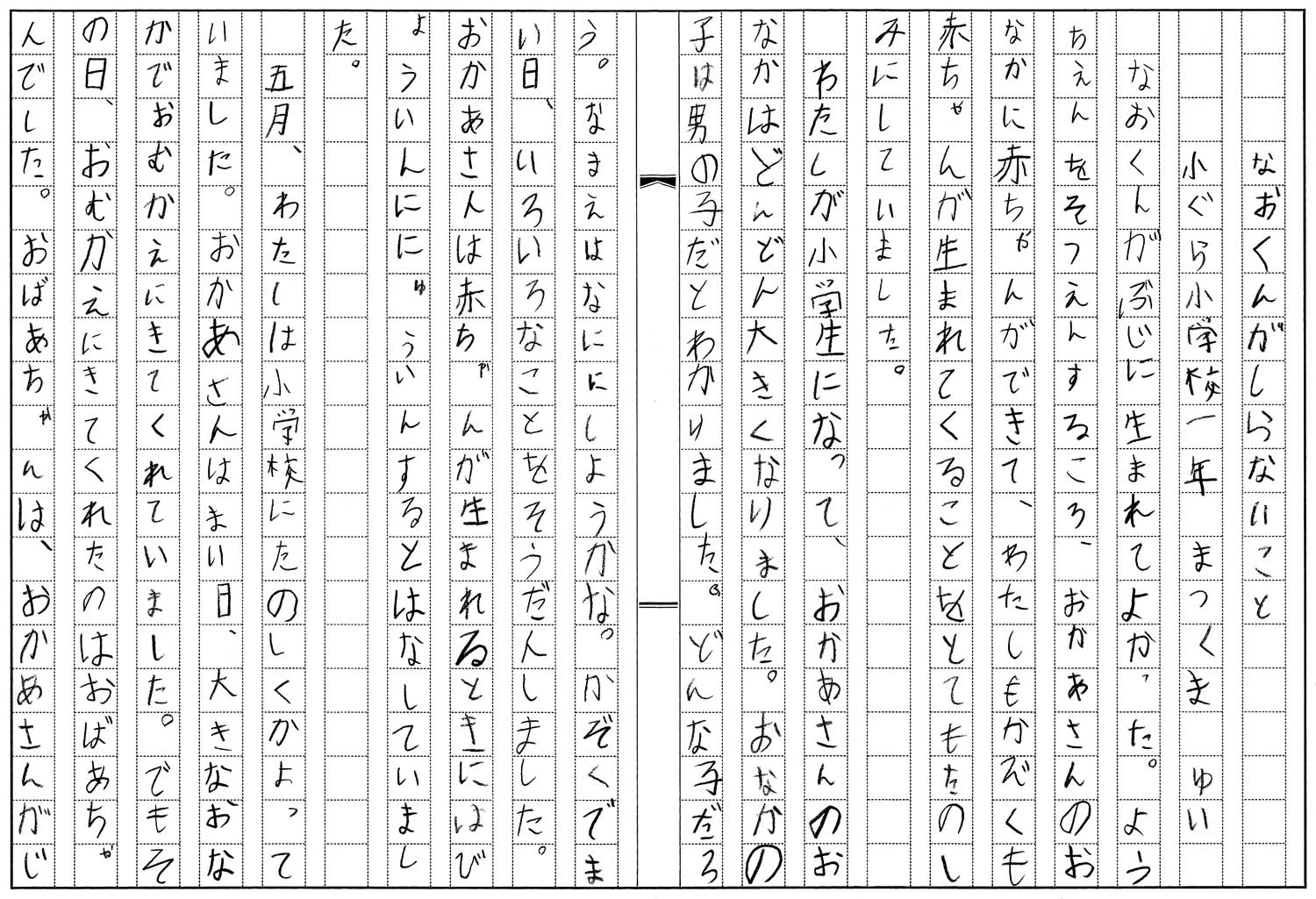 1年生 松隈 唯 さん「なおくんがしらないこと」