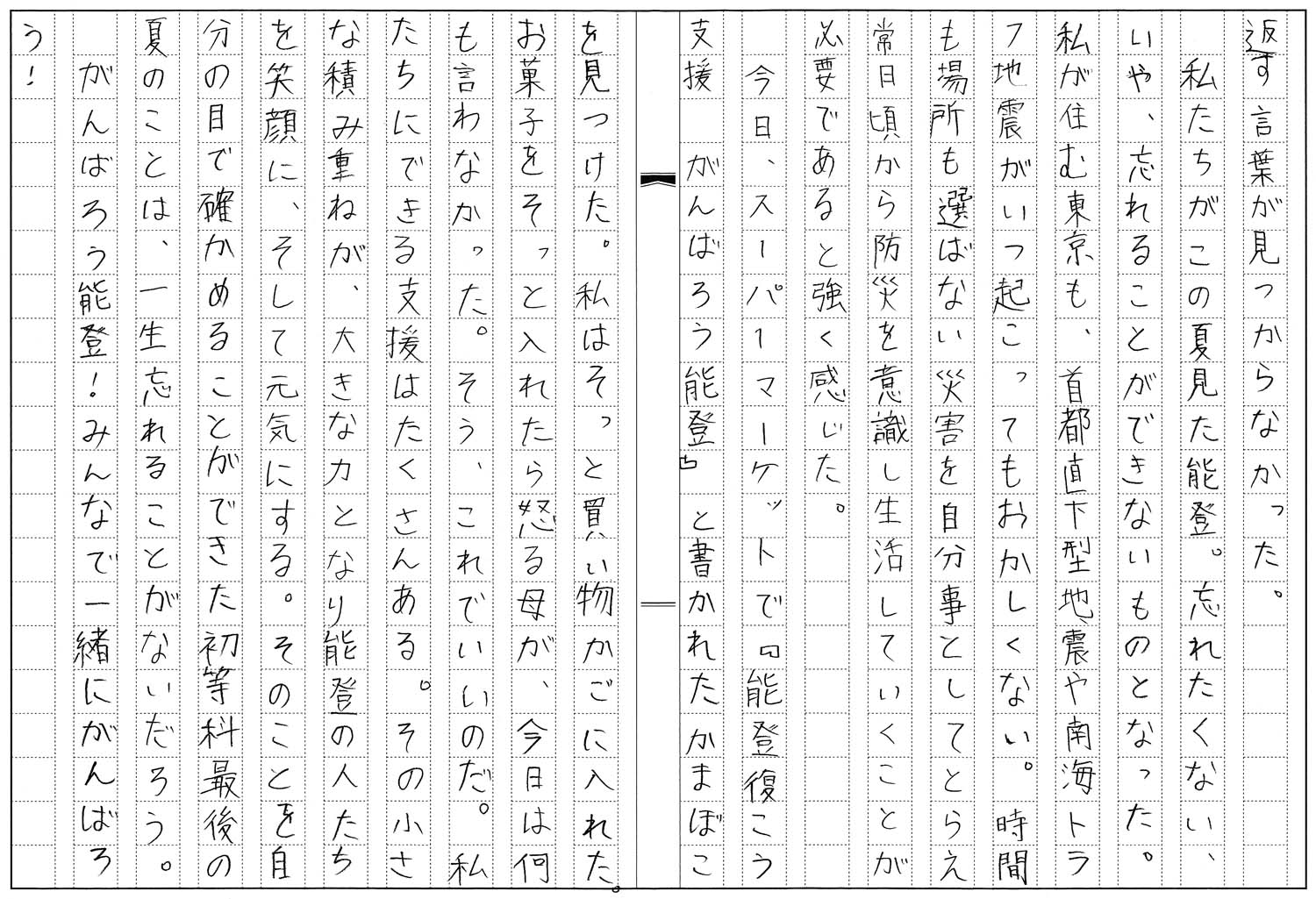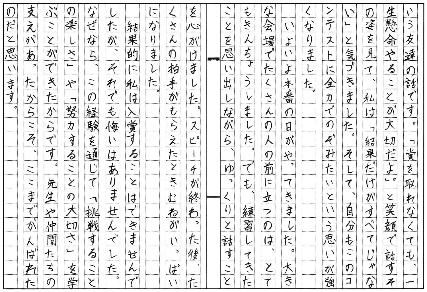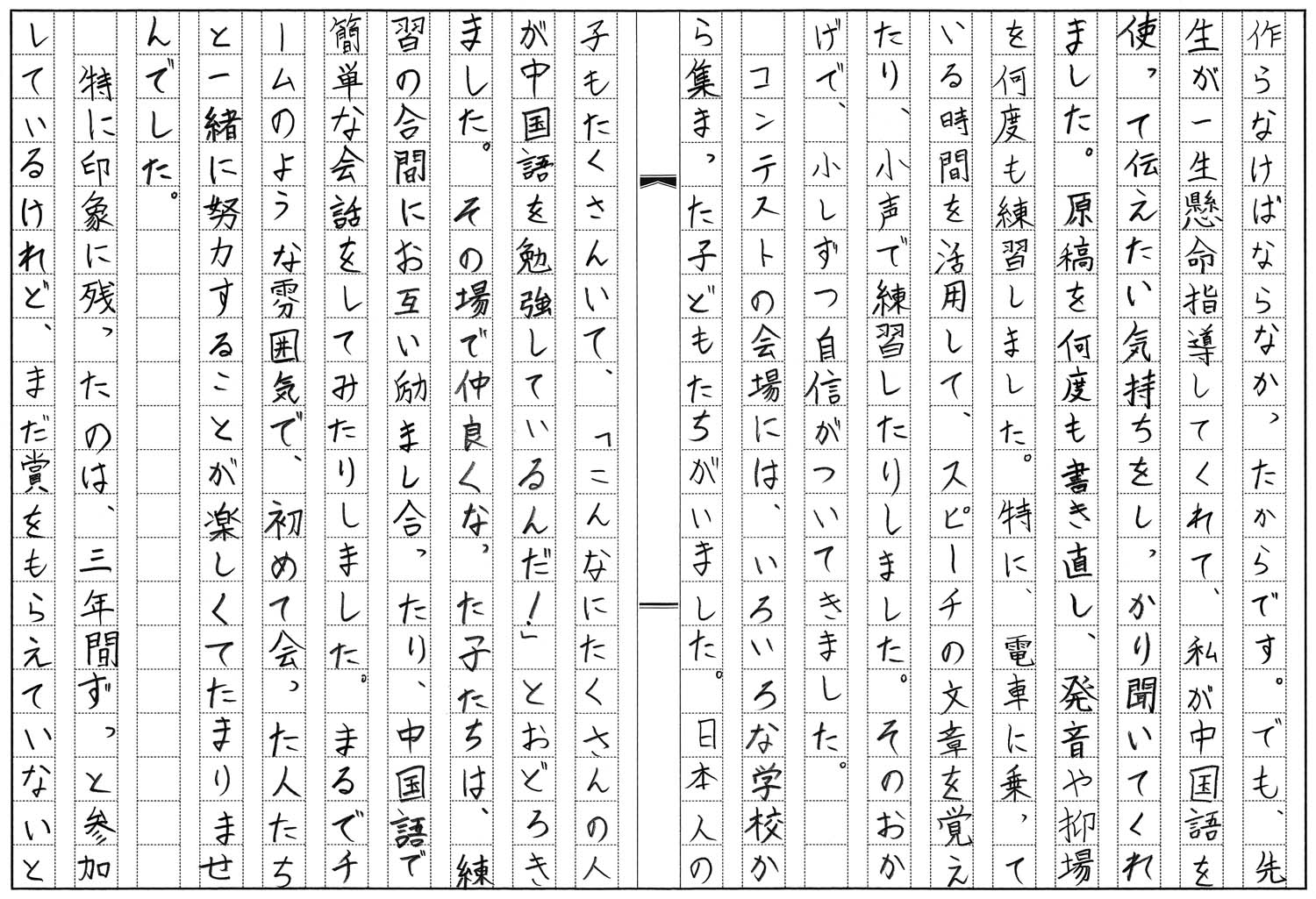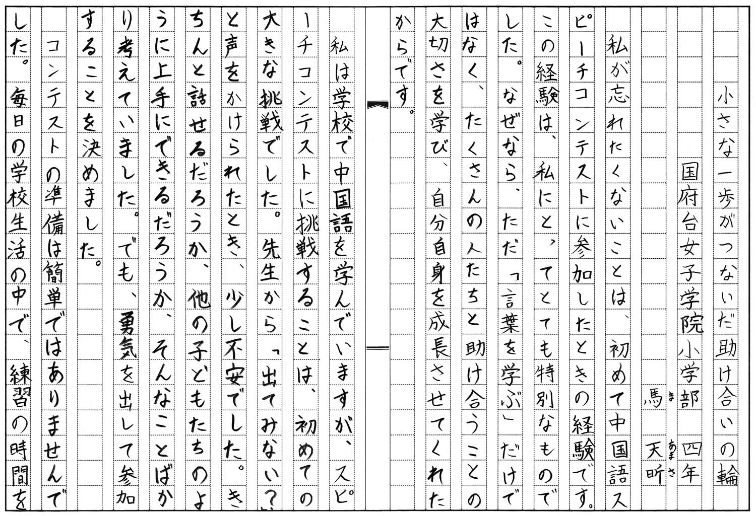 4年生 馬 天昕 さん「小さな一歩がつないだ助け合いの輪」