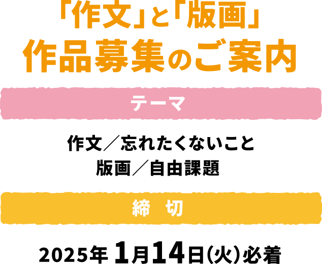 応募は、作文、版画それぞれ1人1点ずつまでとなります。