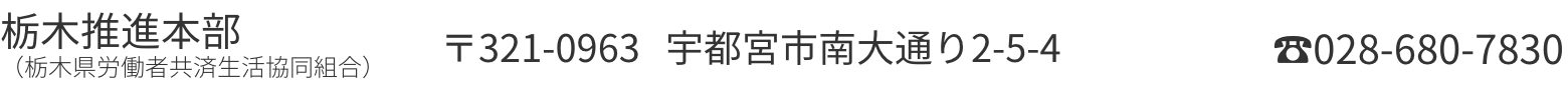 | 栃木推進本部 (栃木県労働者共済生活協同組合) | 〒321-0963 宇都宮市南大通り2-5-4 | 028-680-7830 |
