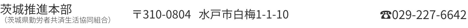 | 茨城推進本部 (茨城県勤労者共済生活協同組合) | 〒310-0804 水戸市白梅1-1-10 | 029-227-6642 |