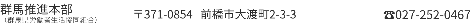 | 群馬推進本部 (群馬県労働者生活協同組合) | 〒371-0854 前橋市大渡町2-3-3 | 027-252-0467 |