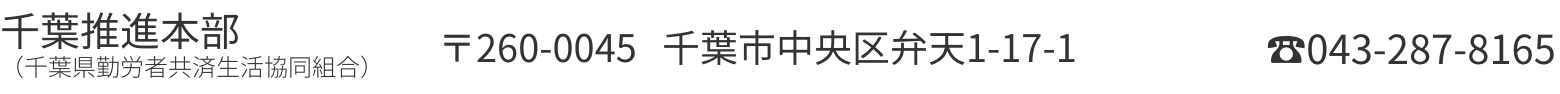 | 千葉推進本部 (千葉県勤労者共済生活協同組合) | 〒260-0045 千葉市中央区弁天1-17-1 | 043-287-8165 |