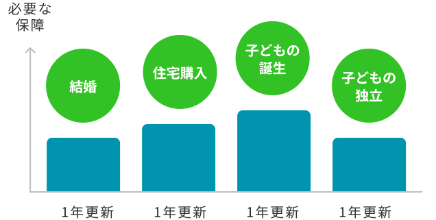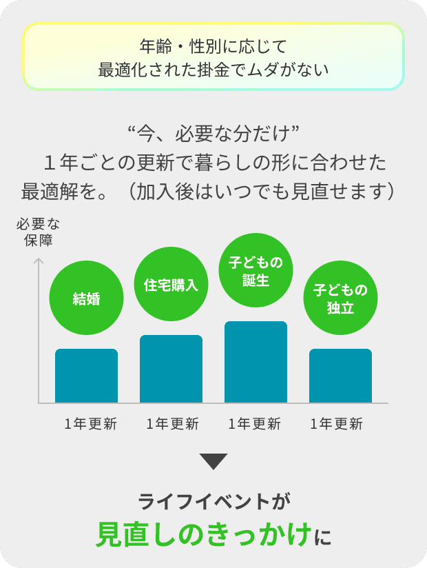 1年ごとの更新で暮らしの形に合わせた最適解を。(加入後はいつでも見直せます)