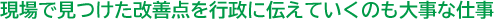 今回の震災で、私たちは防災会としてすぐに救助活動・避難誘導活動を行ったのですが、私服だと一般市民と間違えられて活動がままならないことがありました。そこで、「宮古21防災会」と入った上着をつくることにしました。また、一時的な「避難場所」の整備の必要性も感じました。避難場所は高台にあるため、電気もトイレもなく、長時間過ごすのにはかなり大変です。もっと整備できないかと、要望を市に提出しています。現場の抱える問題と行政で考えている復興計画には、まだ隔たりがあるように感じます。そこを埋めていくのも私の仕事です。